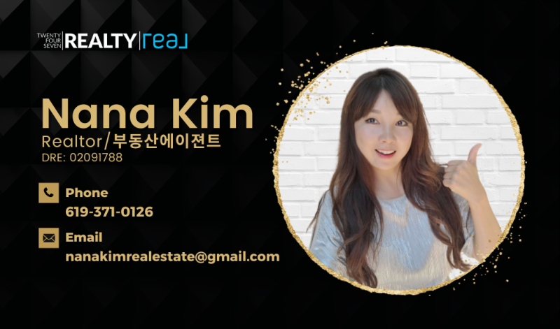 ▶문의: Nana Kim / 619-371-0126 / Nanakimrealestate@gmail.com / 카톡 아이디: NanaStar