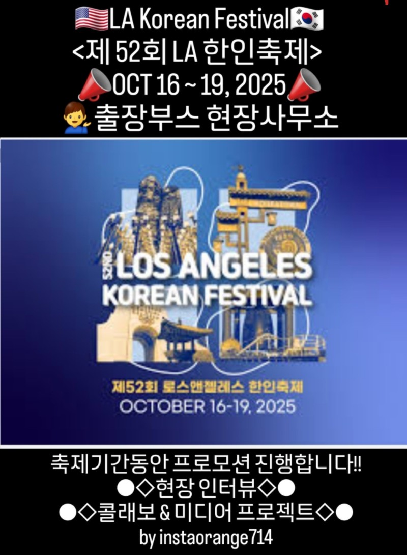 #LA한인축제2025 (10월 16 - 19 / 목.금.토.일)기간동안