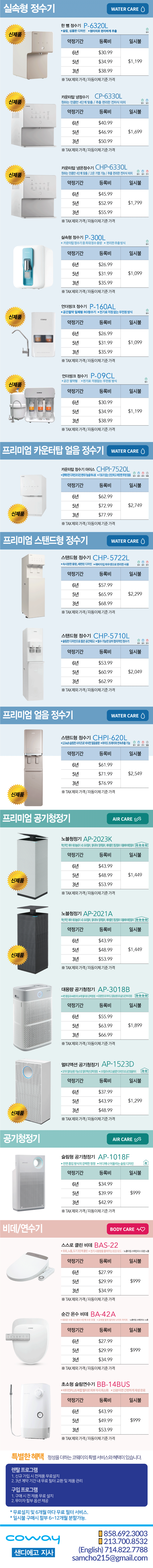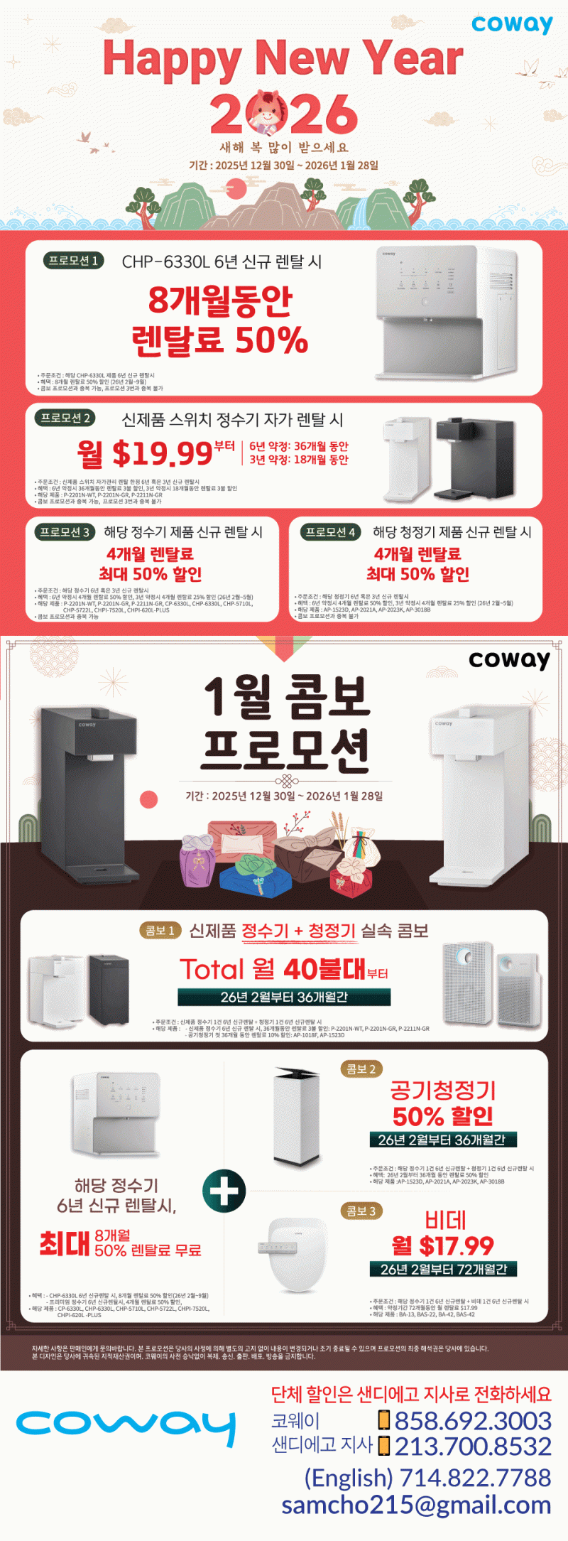 SD 코웨이1월 신년 프로모션 냉온 정수기 8개월  50%  할인및 콤보 할인-