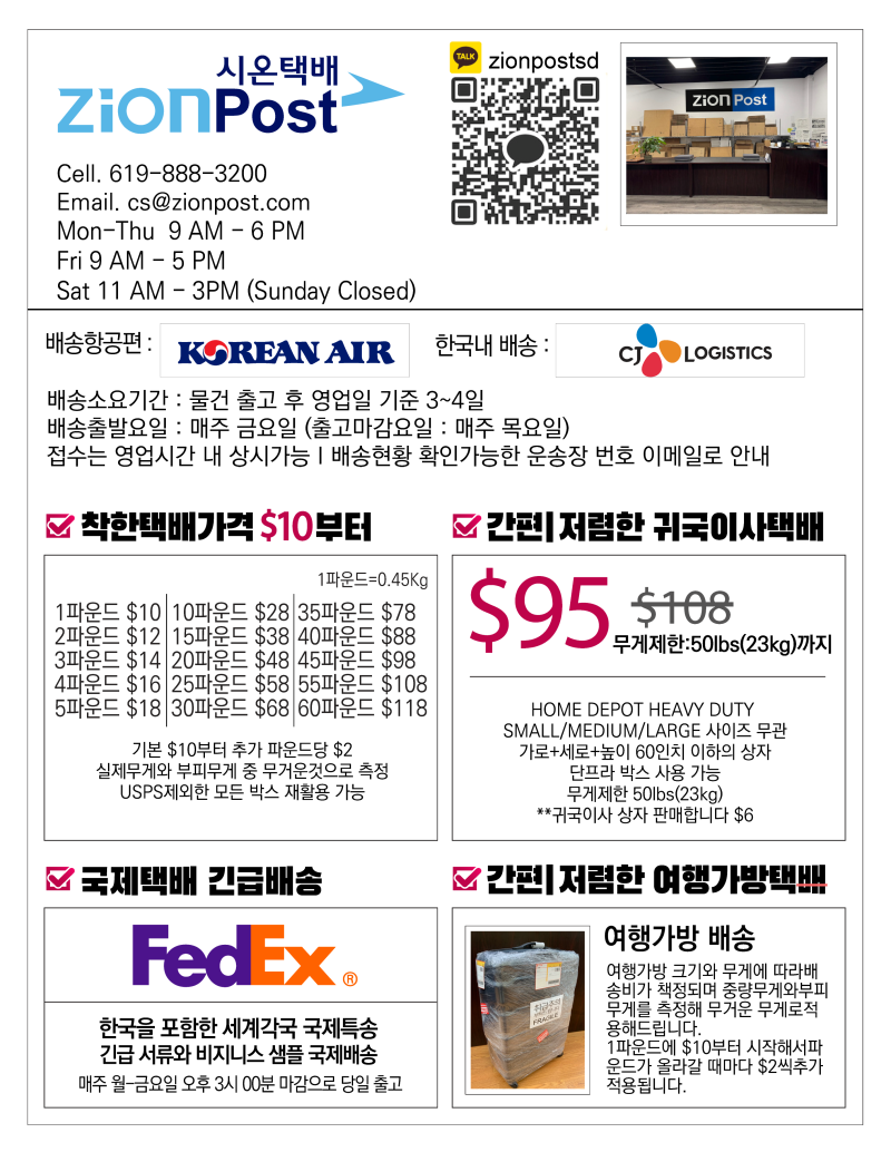 ★★★[귀국이사 시온택배 특가] 미국->한국 I 미국-->미국 내 이사! 해상보다 빠르고 저렴한 배송!
