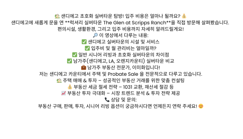샌디에고 초호화 실버타운의 끝판왕- The Glen Sansarang 비지니스광고 0 910 0 0 2025.02.16 10:24 0 0 0 Comments 로그인한 회원만 댓글 등록이 가능합니다. 목록 검색조건 제목 내용 제목+내용 검색어 또는 그리고 검색 번호 제목 이름 날짜 조회 18954 [비지니스광고] LA OC 지역, 이 건승 부동산 전문인 -eon Lee 723 2025.03.10 -eon Lee 2025.03.10 723 18953 [비지니스광고] 프리미엄 유기농 재료 김밥 소개 kgimbap 605 2025.03.09 kgimbap 2025.03.09 605 18952 [비지니스광고] ETL Sanitation 인증이란? 기본 개념과 중요성 IOICOOKER 803 2025.03.08 IOICOOKER 2025.03.08 803 18951 [비지니스광고] 회사설립,상표,특허,트러스트,계약서,비영리법인 -minpro 627 2025.03.05 -minpro 2025.03.05 627 18950 [비지니스광고] ★★★★ 특별할인!! 로컬이사 최저가!! / 샌디에고 범양 36… PUMYANGSD 690 2025.03.05 PUMYANGSD 2025.03.05 690 18949 [비지니스광고] ◆주택융자, Loan Fee 안받습니다! ◆ 착한 이자율 & 신… unboring 743 2025.03.05 unboring 2025.03.05 743 18948 [비지니스광고] 웨딩 헤어 메이크업 사진촬영 루비 704 2025.03.04 루비 2025.03.04 704 18947 [비지니스광고] 예뻐지고 싶은 분들은 모여라 어린세포 640 2025.03.03 어린세포 2025.03.03 640 18946 [세일/쇼핑정보] SD코웨이 3월 신상품 프로모션 웅진코웨이SD 1183 2025.02.28 웅진코웨이SD 2025.02.28 1183 18945 [타운뉴스] 페창가 리조트 카지노, 즉시 입주 가능한 신축 하우스 경품으로 … 운영자 1330 2025.02.27 운영자 2025.02.27 1330 18944 [비지니스광고] ❄️ 2월, 지금 록키 / 밴프는 어떤 모습일까? 겨울 록키 후… 오케이여행사 971 2025.02.27 오케이여행사 2025.02.27 971 18943 [비지니스광고] 엘에이 렌트카 / 얼바인 렌트카 / 풀르턴 렌트카 / 장단기 렌… -oyon Kim 653 2025.02.24 -oyon Kim 2025.02.24 653 18942 [타운뉴스] 가수 이문세님이 7년 만에 미주 콘서트로 돌아옵니다! hkhkhk 2705 2025.02.24 hkhkhk 2025.02.24 2705 18941 [비지니스광고] 융자면허 쪽집게시험대비반(Live Online강의) (맞춤형코스… -oan school 852 2025.02.24 -oan school 2025.02.24 852 18940 [비지니스광고] ■ 부동산 라이센스 ■한글 교재로 강의 듣고, 한 번에 합격! DavidYoon 718 2025.02.20 DavidYoon 2025.02.20 718 18939 [비지니스광고] 특별한 혜택으로 모십니다. 어린세포 659 2025.02.20 어린세포 2025.02.20 659 18938 [비지니스광고] ## 모기지 금리 1% 낮게 드립니다 ## 모기지융자 660 2025.02.19 모기지융자 2025.02.19 660 18937 [비지니스광고] **모기지 융자** 점보론 금리 스페셜 모기지융자 641 2025.02.17 모기지융자 2025.02.17 641 18936 [타운뉴스] 2025년 한인회장배 골프 대회 운영자 1237 2025.02.03 운영자 2025.02.03 1237 18935 [비지니스광고] ✨ 에벤실버타운 완벽 투어 후기! ✨ 초호화 시니어 리빙 투어 … 이미화리얼터 676 2025.02.16 이미화리얼터 2025.02.16 676 열람중 [비지니스광고] 샌디에고 초호화 실버타운의 끝판왕- The Glen Sansarang 911 2025.02.16 Sansarang 2025.02.16 911 18933 [비지니스광고] MuMu sushi &k-food 입니다.. 신바람나는인생 790 2025.02.15 신바람나는인생 2025.02.15 790 18932 [비지니스광고] 도소매, 사무실공간 렌트합니다. Threecarrots 779 2025.02.11 Threecarrots 2025.02.11 779 18931 [타운뉴스] 2025 나눔 On 희망 On 콘서트 <샌디에고 갈보리 장로교회… 갈보리미남 1202 2025.02.11 갈보리미남 2025.02.11 1202 18930 [비지니스광고] 미국 비자,영주권,시민권 신청서류 아포스티유, 범죄경력증명서 발… allminwon2 915 2025.02.10 allminwon2 2025.02.10 915 18929 [비지니스광고] 업체 매매 -una 643 2025.02.10 -una 2025.02.10 643 18928 [비지니스광고] ★★★★ 특별할인!! 로컬이사 최저가!! / 샌디에고 범양 36… PUMYANGSD 751 2025.02.09 PUMYANGSD 2025.02.09 751 18927 [비지니스광고] MuMu sushi &k-food 에 많이들 와주세요.. 신바람나는인생 829 2025.02.08 신바람나는인생 2025.02.08 829 18926 [비지니스광고] ◆주택융자, Loan Fee 안받습니다! ◆ 착한 이자율 & 신… unboring 834 2025.02.07 unboring 2025.02.07 834 18925 [비지니스광고] 성공적인 비즈니스를 위한 최고의 결제 및 POS 솔루션! FirstMerchantSe… 732 2025.02.06 FirstMerchantSe… 2025.02.06 732 18924 [비지니스광고] The Sann Law Group – 경험과 실력으로 승소를 이… Thesann 754 2025.02.05 Thesann 2025.02.05 754 18923 [비지니스광고] 피아노 레슨, 코드 반주, 음악성 개발, 음악성 향상을 위한 P… sourapple 715 2025.02.05 sourapple 2025.02.05 715 18922 [비지니스광고] 특별한 회원을 모십니다 어린세포 707 2025.02.05 어린세포 2025.02.05 707 18921 [비지니스광고] 세무사면허 시험대비반 (Live Online강의)(맞춤형코스)(… EAschool 838 2025.02.03 EAschool 2025.02.03 838 18920 [타운뉴스] 2025년 한인회장배 골프 대회 운영자 1217 2025.02.03 운영자 2025.02.03 1217 18919 [세일/쇼핑정보] ★★★[시온택배] 새로운 장소 안내 SAN304 2034 2025.02.03 SAN304 2025.02.03 2034 18918 [비지니스광고] 눈밑주름, 목주름, 기미, 모공, 홍조, 여드름 상처 치료의 끝… KBeautySD 869 2025.02.02 KBeautySD 2025.02.02 869 18917 [세일/쇼핑정보] SD 코웨이 2월 발렌타인 프로모션 $200 기프트 카드지급--… 웅진코웨이SD 1199 2025.02.02 웅진코웨이SD 2025.02.02 1199 18916 [비지니스광고] 보험면허시험반(한국어시험신설) (적중 한국어교재로 최단기 합격 … -nsurance 901 2025.01.30 -nsurance 2025.01.30 901 18915 [비지니스광고] 고객 맞춤형 법률 서비스를 제공하며, 이민법, 상속법, 상법, … Cchonglaw2025 883 2025.01.28 Cc