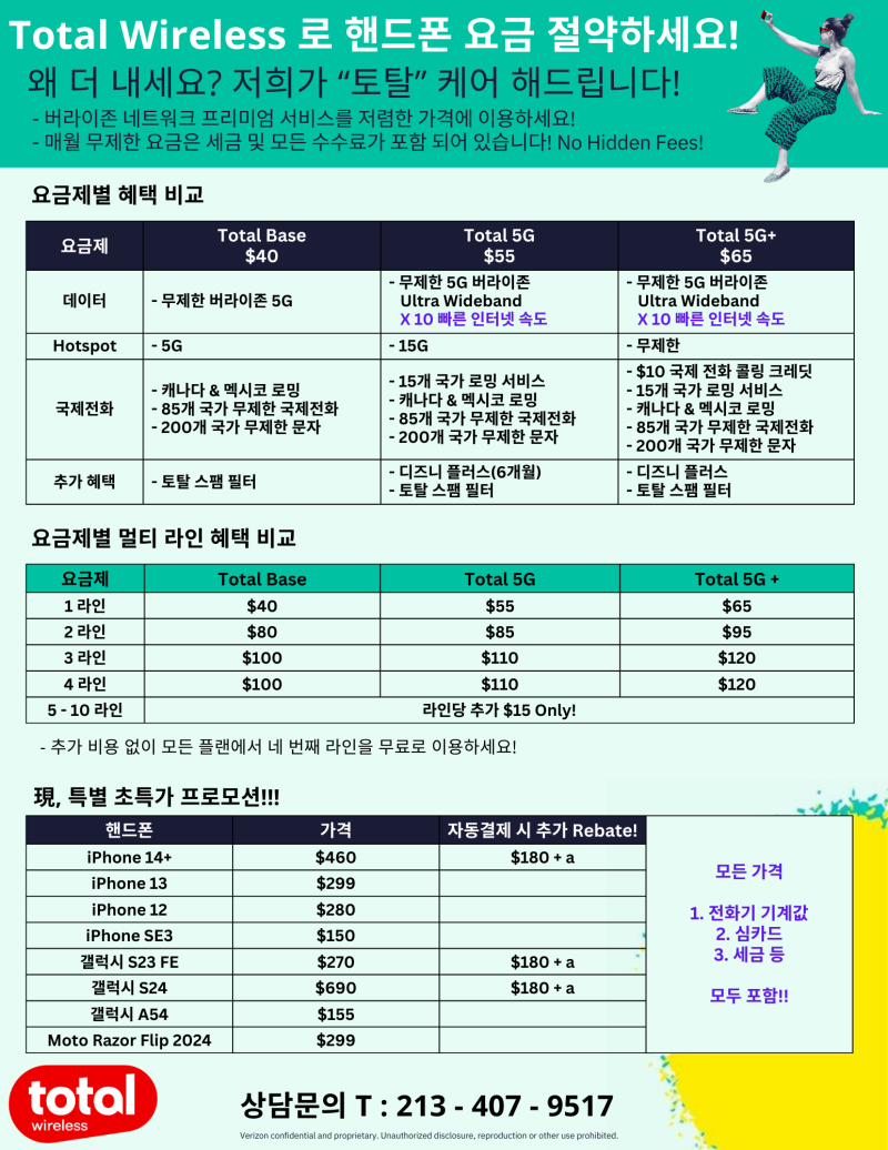 ※쓰던 기계만 가지고 오시고 버라이존 무제한 플랜을 50% 할인 받으세요!!