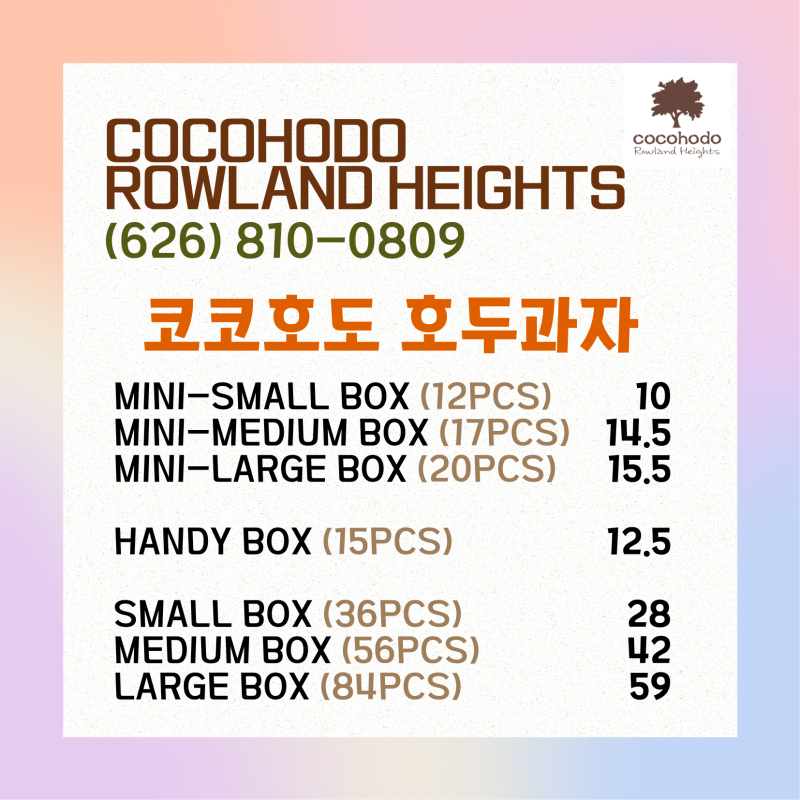 안녕하세요. 캘리포니아 로렌하이츠에 위치한 호두과자 전문점 | 코코호도 로렌하이츠 입니다.