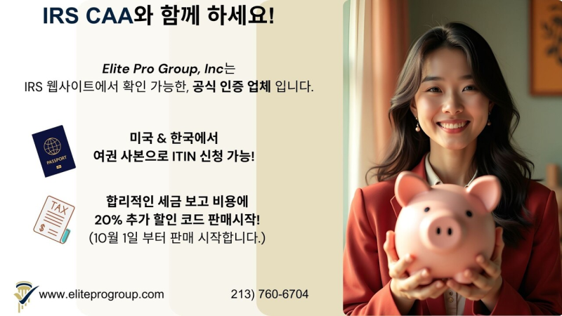 IRS 공인 인증 -세무, 회계, 비지니스설립, ITN 모두 한번에!