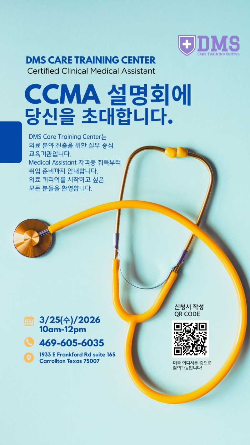 DMS Care Training Center에서 Medical Assistant 과정 설명회를 진행합니다.
