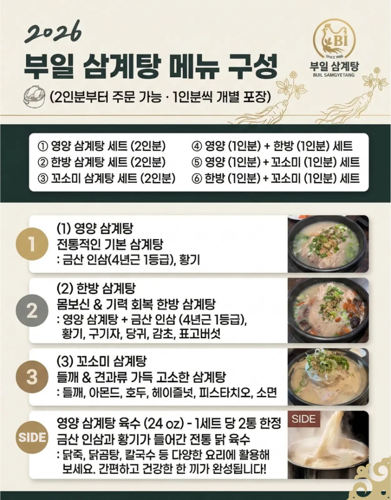 [LA 부일 삼계탕] 3/28 샌디에고 픽업 오픈 안내 benjamin 비지니스광고 0 77 0 0 03.24 18:28 안녕하세요. LA 부일 삼계탕입니다.지난번 샌디에고 픽업이 감사하게도 SOLD OUT 되어, 3/28(토) 다시 오픈하게 되었습니다.한 번 드셔보시고 다시 찾아주시는 분들이 늘고 있습니다. 든든하게 몸보신 한 끼 필요하실 때 편하게 찾아주세요.주문 및 문의는 문자로 부탁드립니다. (213) 739-0001 감사합니다. 0 0 0 Comments 로그인한 회원만 댓글 등록이 가능합니다. 목록 검색조건 제목 내용 제목+내용 검색어 또는 그리고 검색 번호 제목 이름 날짜 조회 [알림] #1 샌디에고 이지혁 부동산 - 집 매매시 꼭 알아야 될 사항 chileerealty 2022.05.10 7741 2 [알림] ☆김나나 샌디에고 부동산☆집 매매시 참고하세요 (모기지 이자율/… 2 NaNaStar 2019.10.18 13764 19313 [세일/쇼핑정보] 코웨이 4월 계약하면 10월까지 렌탈료 무료 웅진코웨이SD 17 03.31 웅진코웨이SD 03.31 17 19312 [비지니스광고] MLB 야구 & LAFC 손흥민 live 중계 만능 tv 박스 … inblock 20 03.30 inblock 03.30 20 19311 [비지니스광고] Korean BBQ HOOD 고기맛이 달라진다! 연기와 냄새가 … -anny 31 03.30 -anny 03.30 31 19310 [비지니스광고] 개인 세금보고 도와드립니다. $50 nuritax 70 03.27 nuritax 03.27 70 19309 [타운뉴스] ★2026년 4월 18일 토요일! 제2회 친구초청 골프대회 안내… 아미쿠스장로교회 37 03.27 아미쿠스장로교회 03.27 37 열람중 [비지니스광고] [LA 부일 삼계탕] 3/28 샌디에고 픽업 오픈 안내 benjamin 78 03.24 benjamin 03.24 78 19307 [세일/쇼핑정보] SD코웨이 프리미엄 비데 최초 30% 파격할인 28일까지 한… VIRUSX 39 03.21 VIRUSX 03.21 39 19306 [비지니스광고] 예뻐질 당신에게 선물합니다 어린세포 52 03.20 어린세포 03.20 52 19305 [비지니스광고] ■부동산 라이센스■ 한국어 강의 듣고 한 번에 합격! unboring 32 03.19 unboring 03.19 32 19304 [타운뉴스] [4/4 케이팝 북톡해요!] Discussing the Joy … chuvit 29 03.19 chuvit 03.19 29 19303 [비지니스광고] 여성 제품 SANDIS sandis 38 03.18 sandis 03.18 38 19302 [타운뉴스] 페창가 리조트 카지노, 하우스를 경품으로 건 ‘Home Swe… 운영자 50 03.18 운영자 03.18 50 19301 [타운뉴스] 푸드핸들러카드 취득(Foodhandler Card) foodhandler 35 03.17 foodhandler 03.17 35 19300 [비지니스광고] 세무사면허 시험대비반 (Live Online강의)(맞춤형코스)(… EAschool 35 03.17 EAschool 03.17 35 19299 [비지니스광고] [iMAGIFY] 한인 비즈니스 맞춤 SNS 마케팅 & 디자인 … iMAGIFY 22 03.17 iMAGIFY 03.17 22 19298 [비지니스광고] "원금은 지키면서 안정적으로 이자만 받을 수 없을까?" 고민하시… 한솔보험 47 03.15 한솔보험 03.15 47 19297 [비지니스광고] 지금 당신의 비즈니스, 해커로부터 안전한가요? IronByte 37 03.15 IronByte 03.15 37 19296 [비지니스광고] 식품위생 매니저 자격증, Food Safety Manager C… 식품위생교육원 37 03.14 식품위생교육원 03.14 37 19295 [비지니스광고] ■주택융자 & 재융자■ Loan Fee 안받습니다! 착한 이자율… DavidYoon 41 03.12 DavidYoon 03.12 41 19294 [비지니스광고] 계속 오르는 전기요금, Solar로 해결하세요. Charlie1704 59 03.10 Charlie1704 03.10 59 19293 [비지니스광고] 핸드폰 케이스 프린트 머신 momentura 65 03.10 momentura 03.10 65 19292 [비지니스광고] 5 스타 에이젼드 Sarah Kwon, 사라 권 Realtor 운영자 47 03.10 운영자 03.10 47 19291 [비지니스광고] 더욱 새로워진 레디언솜100 가격 상승전 구매하세요(incell… 어린세포 52 03.09 어린세포 03.09 52 19290 [타운뉴스] 캐롤 정 무용단 창단 손자 93 03.06 손자 03.06 93 19289 [타운뉴스] 베이비복스, 4월 25일 페창가 리조트 카지노에서 단독 콘서트 … 운영자 83 03.06 운영자 03.06 83 19288 [비지니스광고] Newhome Design Studio- 인테리어 상담 및 디자… NewhomeDesign 114 03.04 NewhomeDesign 03.04 114 19287 [비지니스광고] 미국에서 병원이나 클리닉에서 일할 수 있는 Medical Ass… DMScare 188 03.04 DMScare 03.04 188 19286 [비지니스광고] 대장금 올유캔잇 숯불구이 시작했습니다. DJK KOREAN BB… thangthang 385 03.02 thangthang 03.02 385 19285 [세일/쇼핑정보] SD 코웨이 4월 프로모션 6개월 할인 웅진코웨이SD 175 03.01 웅진코웨이SD 03.01 175 19284 [비지니스광고] K뷰티는 사랑입니다 어린세포 156 02.27 어린세포 02.27 156 19283 [비지니스광고] 교통사고가 나셨나요? SD교통사고전문 134 02.26 SD교통사고전문 02.26 134 19282 [타운뉴스] 페창가 리조트 카지노, 설날 맞아 사자춤 공연과 다양한 추첨 이… 운영자 159 02.24 운영자 02.24 159 19281 [세일/쇼핑정보] San Diego County에 성업중인 한국 프랜차이즈 식당 … Realtor 242 02.24 Realtor 02.24 242 19280 [비지니스광고] 비숙련직에서 전문직으로 - 빠른 우선일자 유지로 영주권 취득 스마트이주공사 192 02.21 스마트이주공사 02.21 192 19279 [비지니스광고] Korean BBQ HOOD 고기맛이 달라진다! 연기와 냄새가 … -anny 278 02.16 -anny 02.16 278 19278 [타운뉴스] 하이브 노래방 한신포차 회 예약 주문 받습니다 yonghoJun 295 02.15 yonghoJun 02.15 295 19277 [비지니스광고] 아름다운 당신께 선물합니다 어린세포 179 02.15 어린세포 02.15 179 19276 [타운뉴스] ★ 샌디에고 골프클럽 ‘온더그린’ 오픈채팅방 오픈! ★ 아미쿠스장로교회 285 02.12 아미쿠스장로교회 02.12 285 19275 [비지니스광고] ◆◆ 최대 15만불 & 20% 다운페이 지원◆◆ 내 집 마련을 … DavidYoon 334 02.11 DavidYoon 02.11 334 19274 [비