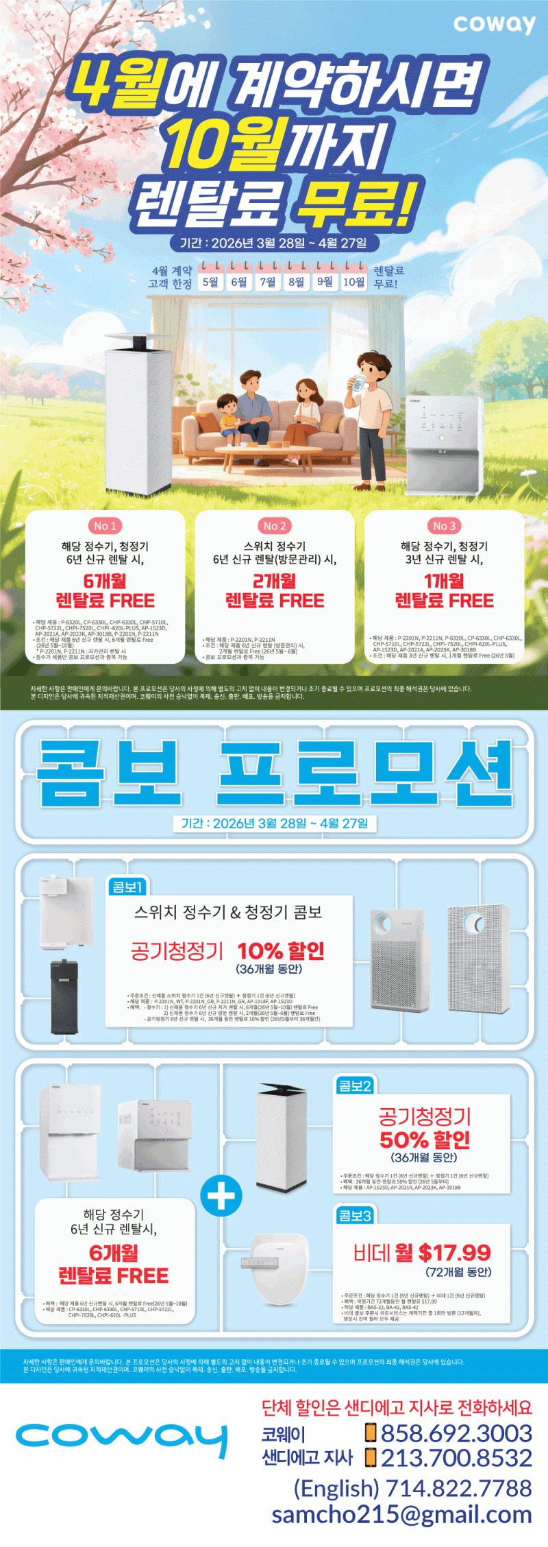 코웨이 4월 계약하면 10월까지 렌탈료 무료 웅진코웨이SD 세일/쇼핑정보 0 12 0 0 12시간전 코웨이 4월 계약하면 10월까지 렌탈료 무료 1.석회 중금속을 깨끗하게 걸러주는 그래서 물맛이 깔끔하고 좋은 코웨이 정수기 2.서비스 만족 1위 3. MADE IN KOREA 제품 4. 판매 1위-많은 고객님들이 믿고 쓰는 코웨이 정수 5. 주문 1-2 일 안에 빠른 설치 및 A/S 6. 6개월마다 필터교환 서비스--미국 전지역동일 코웨이 샌디에고 지사가 함께 하겠습니다. 0 0 0 Comments 로그인한 회원만 댓글 등록이 가능합니다. 목록 검색조건 제목 내용 제목+내용 검색어 또는 그리고 검색 번호 제목 이름 날짜 조회 [알림] #1 샌디에고 이지혁 부동산 - 집 매매시 꼭 알아야 될 사항 chileerealty 2022.05.10 7741 2 [알림] ☆김나나 샌디에고 부동산☆집 매매시 참고하세요 (모기지 이자율/… 2 NaNaStar 2019.10.18 13763 열람중 [세일/쇼핑정보] 코웨이 4월 계약하면 10월까지 렌탈료 무료 웅진코웨이SD 13 12시간전 웅진코웨이SD 09:52 13 19312 [비지니스광고] MLB 야구 & LAFC 손흥민 live 중계 만능 tv 박스 … inblock 15 03.30 inblock 03.30 15 19311 [비지니스광고] Korean BBQ HOOD 고기맛이 달라진다! 연기와 냄새가 … -anny 30 03.30 -anny 03.30 30 19310 [비지니스광고] 개인 세금보고 도와드립니다. $50 nuritax 65 03.27 nuritax 03.27 65 19309 [타운뉴스] ★2026년 4월 18일 토요일! 제2회 친구초청 골프대회 안내… 아미쿠스장로교회 33 03.27 아미쿠스장로교회 03.27 33 19308 [비지니스광고] [LA 부일 삼계탕] 3/28 샌디에고 픽업 오픈 안내 benjamin 75 03.24 benjamin 03.24 75 19307 [세일/쇼핑정보] SD코웨이 프리미엄 비데 최초 30% 파격할인 28일까지 한… VIRUSX 36 03.21 VIRUSX 03.21 36 19306 [비지니스광고] 예뻐질 당신에게 선물합니다 어린세포 49 03.20 어린세포 03.20 49 19305 [비지니스광고] ■부동산 라이센스■ 한국어 강의 듣고 한 번에 합격! unboring 28 03.19 unboring 03.19 28 19304 [타운뉴스] [4/4 케이팝 북톡해요!] Discussing the Joy … chuvit 26 03.19 chuvit 03.19 26 19303 [비지니스광고] 여성 제품 SANDIS sandis 35 03.18 sandis 03.18 35 19302 [타운뉴스] 페창가 리조트 카지노, 하우스를 경품으로 건 ‘Home Swe… 운영자 48 03.18 운영자 03.18 48 19301 [타운뉴스] 푸드핸들러카드 취득(Foodhandler Card) foodhandler 34 03.17 foodhandler 03.17 34 19300 [비지니스광고] 세무사면허 시험대비반 (Live Online강의)(맞춤형코스)(… EAschool 30 03.17 EAschool 03.17 30 19299 [비지니스광고] [iMAGIFY] 한인 비즈니스 맞춤 SNS 마케팅 & 디자인 … iMAGIFY 19 03.17 iMAGIFY 03.17 19 19298 [비지니스광고] "원금은 지키면서 안정적으로 이자만 받을 수 없을까?" 고민하시… 한솔보험 43 03.15 한솔보험 03.15 43 19297 [비지니스광고] 지금 당신의 비즈니스, 해커로부터 안전한가요? IronByte 33 03.15 IronByte 03.15 33 19296 [비지니스광고] 식품위생 매니저 자격증, Food Safety Manager C… 식품위생교육원 34 03.14 식품위생교육원 03.14 34 19295 [비지니스광고] ■주택융자 & 재융자■ Loan Fee 안받습니다! 착한 이자율… DavidYoon 38 03.12 DavidYoon 03.12 38 19294 [비지니스광고] 계속 오르는 전기요금, Solar로 해결하세요. Charlie1704 56 03.10 Charlie1704 03.10 56 19293 [비지니스광고] 핸드폰 케이스 프린트 머신 momentura 63 03.10 momentura 03.10 63 19292 [비지니스광고] 5 스타 에이젼드 Sarah Kwon, 사라 권 Realtor 운영자 44 03.10 운영자 03.10 44 19291 [비지니스광고] 더욱 새로워진 레디언솜100 가격 상승전 구매하세요(incell… 어린세포 51 03.09 어린세포 03.09 51 19290 [타운뉴스] 캐롤 정 무용단 창단 손자 90 03.06 손자 03.06 90 19289 [타운뉴스] 베이비복스, 4월 25일 페창가 리조트 카지노에서 단독 콘서트 … 운영자 83 03.06 운영자 03.06 83 19288 [비지니스광고] Newhome Design Studio- 인테리어 상담 및 디자… NewhomeDesign 114 03.04 NewhomeDesign 03.04 114 19287 [비지니스광고] 미국에서 병원이나 클리닉에서 일할 수 있는 Medical Ass… DMScare 187 03.04 DMScare 03.04 187 19286 [비지니스광고] 대장금 올유캔잇 숯불구이 시작했습니다. DJK KOREAN BB… thangthang 384 03.02 thangthang 03.02 384 19285 [세일/쇼핑정보] SD 코웨이 4월 프로모션 6개월 할인 웅진코웨이SD 175 03.01 웅진코웨이SD 03.01 175 19284 [비지니스광고] K뷰티는 사랑입니다 어린세포 156 02.27 어린세포 02.27 156 19283 [비지니스광고] 교통사고가 나셨나요? SD교통사고전문 133 02.26 SD교통사고전문 02.26 133 19282 [타운뉴스] 페창가 리조트 카지노, 설날 맞아 사자춤 공연과 다양한 추첨 이… 운영자 159 02.24 운영자 02.24 159 19281 [세일/쇼핑정보] San Diego County에 성업중인 한국 프랜차이즈 식당 … Realtor 242 02.24 Realtor 02.24 242 19280 [비지니스광고] 비숙련직에서 전문직으로 - 빠른 우선일자 유지로 영주권 취득 스마트이주공사 192 02.21 스마트이주공사 02.21 192 19279 [비지니스광고] Korean BBQ HOOD 고기맛이 달라진다! 연기와 냄새가 … -anny 277 02.16 -anny 02.16 277 19278 [타운뉴스] 하이브 노래방 한신포차 회 예약 주문 받습니다 yonghoJun 295 02.15 yonghoJun 02.15 295 19277 [비지니스광고] 아름다운 당신께 선물합니다 어린세포 179 02.15 어린세포 02.15 179 19276 [타운뉴스] ★ 샌디에고 골프클럽 ‘온더그린’ 오픈채팅방 오픈! ★ 아미쿠스장로교회 285 02.12 아미쿠스장로교회 02.12 285 19275 [비지니스광고] ◆◆ 최대 15만불 & 20% 다운페이 지원◆◆ 내 
