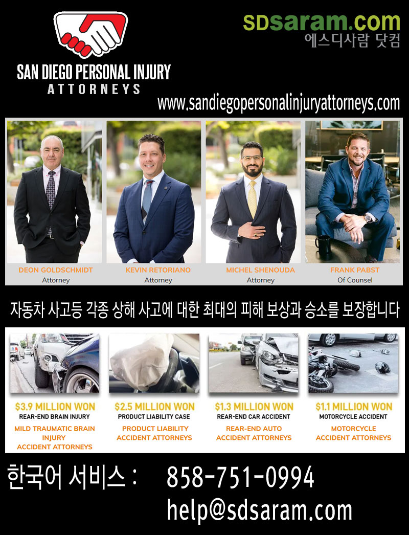 ★★ 교통사고 상해 전문 변호사 / 에스디사람 [한국어 서비스] ★★ 운영자 알림 0 8753 2024.03.11 10:27 . 0 Comments 로그인한 회원만 댓글 등록이 가능합니다. 검색 목록 검색조건 제목 내용 제목+내용 검색어 또는 그리고 검색 번호 제목 이름 날짜 조회 알림 [알림] ** 영사관 사칭 스캠 전화 주의 하세요!!! 운영자 2025.12.09 1890 알림 [알림] ■■■ 박준 미용실 - 임시 장소 안내 운영자 2025.01.25 6381 알림 [알림] ★★ 교통사고 상해 전문 변호사 / 에스디사람 [한국어 서비스]… 운영자 2024.03.11 10544 45 알림 [알림] ☺ ☺ 행복 이삿짐 / 운반 서비스 안내 45 운영자 2000.01.02 164711 32 알림 [알림] 캘리포니아 DMV (New driver's license app… 32 운영자 2015.01.02 114822 52 알림 [알림] ★주의★ craigslist 에서 일어나는 사기가 sdsaram… 52 주의 2012.07.09 183016 216 20 알림 ■■ 베이비복스 공짜표 이벤트 --> (4월 25일) Pecha… 20 운영자 122 13시간전 운영자 10:34 122 215 알림 ◆◆ 연세 대학교 경영 전문 대학 글로벌 MBA 프로그램 ◆… 운영자 201 03.23 운영자 03.23 201 214 알림 오늘 화요일 테니스 레슨 (재능기부) 있읍을 공지합니다 -재현 103 03.24 -재현 03.24 103 213 알림 재산권 행사와 관련하여 이천석님 (여)을 찾고 있습니다 ZippyTax 220 03.20 ZippyTax 03.20 220 212 알림 한국 무용 협회 새 강사님 프로화일 -race Song 203 03.19 -race Song 03.19 203 211 알림 [4/4 케이팝 북톡해요!] Discussing the Joy … chuvit 93 03.19 chuvit 03.19 93 210 2 알림 영사님 오시는날? 2 -ulie 270 03.10 -ulie 03.10 270 209 알림 테니스 재능기부 레슨 공지합니다 -재현 118 03.10 -재현 03.10 118 208 알림 [아기학교] 예담교회(구 연합감리교회) 미앤맘 26기가 시작됩니… menmom 141 03.10 menmom 03.10 141 207 알림 `AI 컬러 등급제` 청원 몬킴 125 03.08 몬킴 03.08 125 206 알림 캐롤 정 무용단 창단 손자 275 03.06 손자 03.06 275 205 알림 [주사랑교회] 2026 신년말씀집회 주사랑교회목회실 254 03.05 주사랑교회목회실 03.05 254 204 1 알림 한국 설 연휴 박스오피스 1위 <왕과 사는 남자>, 미국 상륙…… 1 운영자 1909 02.17 운영자 02.17 1909 203 알림 3월, K-Tech Pioneers 한인 창업가 밋업에 초대합니… likelionus 284 02.26 likelionus 02.26 284 202 알림 [SD KoreanParents 한인 학부모회] 9대 임원진 추… 한인학부모회 295 02.23 한인학부모회 02.23 295 201 알림 디지털 시대 부모의 역할 온라인 무료 세미나오늘 2월 22일 일… 엘림 207 02.22 엘림 02.22 207 200 알림 샌디에고- 엘에이 라이드 구합니다! 2/25 밤 11시반 비행기 TBL22 311 02.21 TBL22 02.21 311 199 1 알림 왕과 사는 남자 샌디에고 개봉 - 2월 20일 Fashion V… 1 운영자 953 02.17 운영자 02.17 953 198 알림 STROKE & SHOT SD 테니스 골프 커뮤니티 신규 회원 … elsy1318 334 02.15 elsy1318 02.15 334 197 알림 로뎀 여성 앙상블 1회 정기공연 및 샌디에고 갈보리 한인장로교회… Jason5521 483 02.11 Jason5521 02.11 483 196 알림 디지털 시대 부모의 역할 온라인 세미나 2월 22일 일요일 오후… 엘림 264 02.11 엘림 02.11 264 195 알림 [SDKPA] 2026-2028 제9대 샌디에고 한인 학부모회 … 한인학부모회 427 02.08 한인학부모회 02.08 427 194 알림 이사 하실려고 하세요? 엄청 저렴한 이사짐 회사를 소개합니다 진실 678 02.06 진실 02.06 678 193 알림 2026-2028 제9대 샌디에고 한인 학부모회 임원진 모집 한인학부모회 411 02.01 한인학부모회 02.01 411 192 알림 2026 병오년 사주 인생 상담 scarlet22 381 01.30 scarlet22 01.30 381 191 알림 48기 한빛아기학교 개강 알림 hanbitbaby 440 01.27 hanbitbaby 01.27 440 190 알림 바이올린 -usan kim 499 01.26 -usan kim 01.26 499 189 3 알림 한국에 보낼 소포.....알고 있으면 좋은 정보입니다 3 스타일 1163 01.23 스타일 01.23 1163 188 알림 진도개 숫놈(MALE) 구함 -uisik oh 558 01.12 -uisik oh 01.12 558 187 4 알림 발레레슨합니다 ( 성인취미발레 초보가능) 4 rrrrr5 764 01.12 rrrrr5 01.12 764 186 알림 INTEGIRLS 수학 대회 ju1dy 414 01.11 ju1dy 01.11 414 185 알림 미국에서 의료직업, 막막하셨나요? 현직 졸업생과 함께하는 의… DMScare 575 01.09 DMScare 01.09 575 184 알림 의료 커리어의 다음 단계를 고민하는 분들을 위한 졸업생 경험 공… DMScare 643 01.02 DMScare 01.02 643 183 53 알림 ■■ 임창정 Pechanga Summit 콘서트 무료 티켓 이벤… 53 운영자 1309 01.01 운영자 01.01 1309 182 알림 12/31 까지 유효한 시월드 게스트 티켓 세장 무료 Arapark 437 2025.12.30 Arapark 2025.12.30 437 181 알림 재능기부 테니스 레슨 공지 -재현 631 2025.12.23 -재현 2025.12.23 631 180 알림 시즌끝난 크리스마스 트리 픽업합니다. cong 649 2025.12.22 cong 2025.12.22 649 179 알림 <세스나 비행기, 비행 교육합니다> 푸른밤하늘 546 2025.12.22 푸른밤하늘 2025.12.22 546 178 알림 연기 개인레슨 안내 Davi 613 2025.12.22 Davi 2025.12.22 613 177 알림 메디컬 어시스트 한국어 수업이 2026년 2월에 시작합니다. 등… DMScare 780 2025.12.22 DMScare 2025.12.22 780 176 알림 CV Art Studio - Free Classes !!! 운영자 884 2025.12.18 운영자 2025.12.18 884 175 알림 싱글맘들을 위한 사랑나눔행사 Holywave 718 2025.12.11 Holywave 2025.12.11 718 174 알림 ** 영사관 사칭 스캠 전화 주의 하세요!!! 운영자 1890 2025.12.09 운영자 2025.12.09 1890 173 알림 2025 샌디에고 gOT Talent/K-pop 경연 및 한인 … SD라코 706 2025.12.04 SD라코 2025.12.04 706 172 알림 성인취미발레 수업 합니다. rrrrr5 713 2025.12.01 rrrrr5 2025.12.01 713 171 알림 <비행 교관 수업 