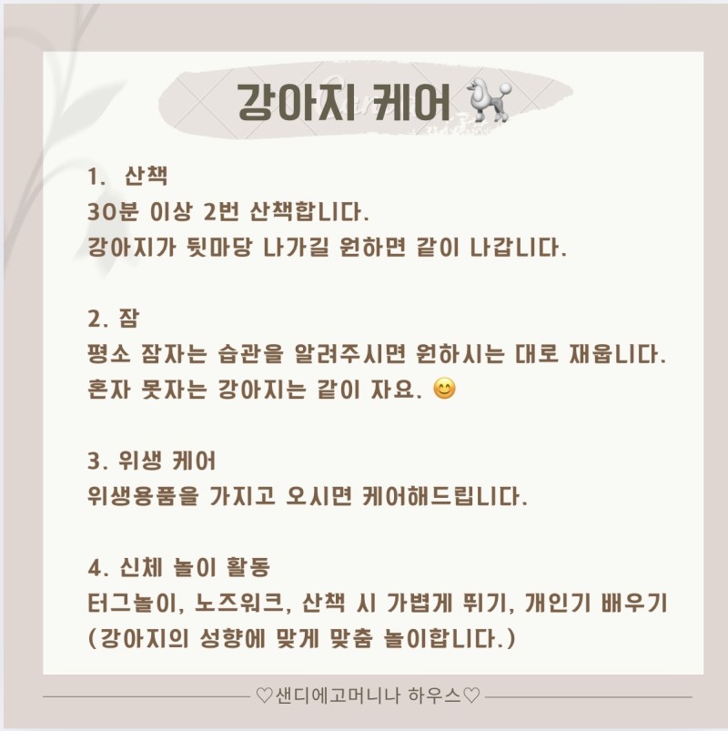 <펫보딩, 강아지 데이케어> 샌디에고머니나 샌디에고머니나 일반 0 548 01.12 14:01 안녕하세요. 소중한 강아지 가족처럼 돌봐드리는샌디에고머니나 하우스입니다. (저희 집은 애완동물을 키우지 않고, 단독케어로 돌봐드립니다.)장소는 92127 뒷 마당이 있는 하우스입니다.대형견은 따로 문의 주세요사랑하는 반려견이낯선 호텔이 아닌 ‘편안한 집’에서안심하고 머물 수 있도록 정성껏 돌보겠습니다.궁금하신 점은 언제든 편하게 문의 주세요 0 Comments 로그인한 회원만 댓글 등록이 가능합니다. 검색 목록 검색조건 제목 내용 제목+내용 검색어 또는 그리고 검색 번호 제목 이름 날짜 조회 일반 [알림] 조마루 콘보이 Event! JomaruConvoy 03.04 943 182 4 일반 샌디에고 최고의 자동차 body shop 추천할게요. 4 park77 534 03.27 park77 03.27 534 181 일반 재산권 행사와 관련하여 이천석님 (여)을 찾고 있습니다. ZippyTax 194 03.19 ZippyTax 03.19 194 180 일반 노후배터리 복원-수리 전문점 모집 Richardn 84 03.17 Richardn 03.17 84 179 3 일반 샌디에이고에서 LA 공항까지 태워주실분 3 JennyK 422 03.16 JennyK 03.16 422 178 일반 구하기 힘든 한국 육아 용품/전집, 유아 가구 공구 정보 공유해… 디초이 87 03.15 디초이 03.15 87 177 일반 오늘저녁 8시 LAFC 경기볼때 있을까요?? SanDiMan 125 03.10 SanDiMan 03.10 125 176 일반 조마루 콘보이 Event! JomaruConvoy 943 03.04 JomaruConvoy 03.04 943 175 일반 라이드가능: 2/23 6am carmel valley에서 LAX coollamb 257 02.21 coollamb 02.21 257 174 일반 미국진출 도와주실 사업파트너 모집 Richardn 458 02.09 Richardn 02.09 458 173 일반 2/6 (금) 저녁 8~9쯤 LA >>San Diego 내려오… 완자 407 02.01 완자 02.01 407 172 일반 방 빌려드림니다 나무namu 471 01.29 나무namu 01.29 471 171 일반 UCSD 학생 PA 쉐도잉 도움 주실 분 찾습니다. 펩리 437 01.29 펩리 01.29 437 170 1 일반 LA → 샌디에고(SD)로 운송해 주실 분을 찾습니다. 1 IOICOOKER 745 01.27 IOICOOKER 01.27 745 169 일반 안녕하세요 혹시 UCSD에서 MPH를 전공하고 계신 선생님들 계… 휘낭시에 502 01.27 휘낭시에 01.27 502 168 일반 약 10년전 다운타운 스시덴 사장님 찾아요! -on 603 01.23 -on 01.23 603 167 일반 바지 Zipper $10에 바꿔 드립니다. loveboat 489 01.22 loveboat 01.22 489 166 일반 더 완벽한 비즈니스를 위한 Premium IT Support IronByte 373 01.15 IronByte 01.15 373 열람중 일반 <펫보딩, 강아지 데이케어> 샌디에고머니나 샌디에고머니나 549 01.12 샌디에고머니나 01.12 549 164 일반 Ray Chen Live: 비르투오시티와 장엄함의 만남 judyoon 371 01.06 judyoon 01.06 371 163 일반 성인 초보자 피아노 레슨 선생님을 찾습니다 jchoi57 441 01.03 jchoi57 01.03 441 162 일반 씨월드 티켓 두장 구합니다 Laya 445 2025.12.26 Laya 2025.12.26 445 161 일반 폐배터리 복원사업 미국진출 도와주실 총판_지사 모집 Richardn 521 2025.12.25 Richardn 2025.12.25 521 160 일반 (사람찾아요!) 과거 샌디에고 올드타운 스시덴 사장님 찾습니다 -on 990 2025.12.25 -on 2025.12.25 990 159 일반 환전가능하신분구해요 AAAa 613 2025.12.07 AAAa 2025.12.07 613 158 일반 세라젬 직영점 매장 안내 드립니다 CeragemSD 736 2025.11.23 CeragemSD 2025.11.23 736 157 일반 LAX to Buena Park 라이드 해주실분 구합니다! Darren 689 2025.11.21 Darren 2025.11.21 689 156 일반 12/6/2025 줌으로 의료인 직업 세미나를 합니다 DMScare 638 2025.11.20 DMScare 2025.11.20 638 155 일반 경락마사지 Jbach 844 2025.11.14 Jbach 2025.11.14 844 154 일반 정연퇴직하신 여자분으로 여행 함께 하실 분 lily 1269 2025.11.10 lily 2025.11.10 1269 153 일반 집청소 필요하신분 연락 주세요. none 884 2025.11.02 none 2025.11.02 884 152 일반 천년의 기도, 낭만의 절정 judyoon 681 2025.11.01 judyoon 2025.11.01 681 151 일반 혹시 유로화 필요하신 분 계실까요? 낑깡 662 2025.10.31 낑깡 2025.10.31 662 150 일반 레이 첸, 11월 캐나다 투어 — 밴쿠버 & 토론토에서 만나는 … judyoon 783 2025.10.31 judyoon 2025.10.31 783 149 일반 심리학 박사과정 CHU6152 895 2025.10.27 CHU6152 2025.10.27 895 148 일반 세라젬 La Jolla 직영점으로 무료 온열마사지 체험오세요 CeragemSD 622 2025.10.25 CeragemSD 2025.10.25 622 147 일반 세라젬 La Jolla 직영점에서 무료 온열마사지 체험하세요 CeragemSD 678 2025.10.23 CeragemSD 2025.10.23 678 146 일반 한국 내 투자 및 은퇴형 전원주택 분양 공고 KP1234 766 2025.10.23 KP1234 2025.10.23 766 145 1 일반 고양이 무료 드립니다 1 코코0505 1178 2025.10.22 코코0505 2025.10.22 1178 144 8 일반 세라젬 La Jolla 직영점에서 무료 온열마사지 체험하세요 8 CeragemSD 1308 2025.10.16 CeragemSD 2025.10.16 1308 143 일반 어릴 적 오락실 감성, 다시 살아나다 캡틴11 886 2025.10.14 캡틴11 2025.10.14 886 142 일반 세라젬 (CERAGEM)무료 체험하러 오세요~ CeragemSD 755 2025.10.11 CeragemSD 2025.10.11 755 141 일반 고양이 키워주실 분 코코0505 1195 2025.10.08 코코0505 2025.10.08 1195 140 일반 샌디애고 핫 순두부 프랜차이즈인기 푸드코트 내 입점 Lenateam 1056 2025.10.06 Lenateam 2025.10.06 1056 139 일반 혹시 한국분이 운영하시는 버라이존 매장 있을까요? Mid34 687 2025.09.28 Mid34 2025.09.28 687 138 일반 환전 구해요 제가 달러 Oooo 682 2025.09.28 Oooo 2025.09.28 682 137 일반 안녕하세요 하민수 968 2025.09.25 하민수 2025.09.25 968 136 일반 안녕하세요 하민수 982 2025.09.21 하민수 2025.09.21 982 135 일반 샌디에고 한인 주택박람회 - 내 집 마련의 기회 willie 689 2025.09.18 willie 2025.09.18 689 134 일반 환전 원합니