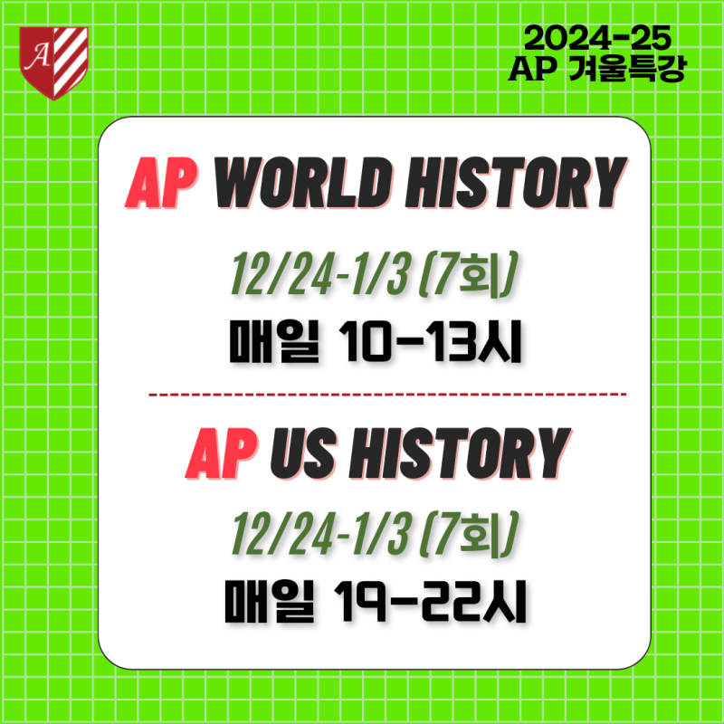 겨울방학을 맞아 AP World History와 AP US History 완벽 대비하자!