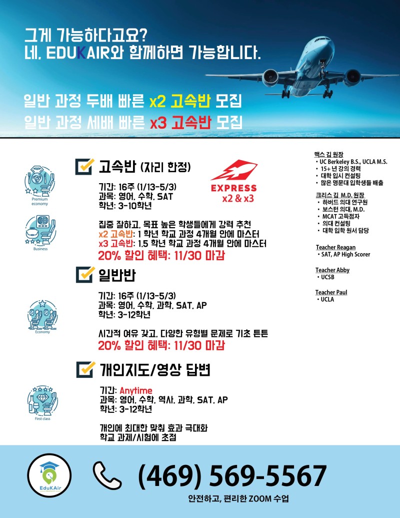 봄 학기 1월 부터 시작하는 x2, x3 고속반 모집 합니다.