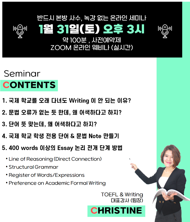 1/31(토) 국제 6~9학년 대상, 주니어 Writing 온라인 무료 세미나 신청안내 [세한 아카데미]