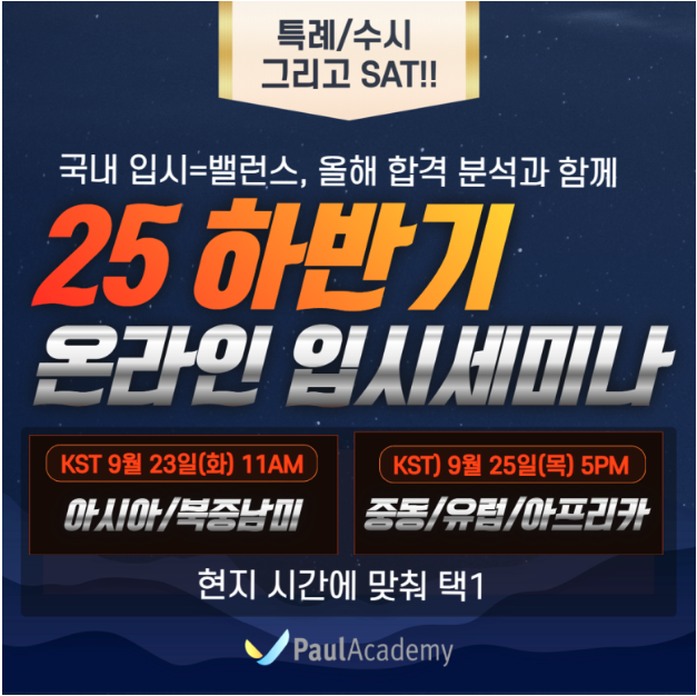 폴아카데미 25하반기 국내입시 온라인 세미나 택1 신청