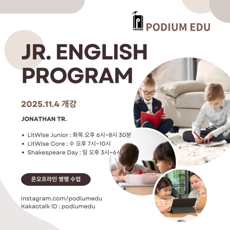 초·중등 영어 학습을 위한 Junior English Program을 새롭게 개설했습니다.