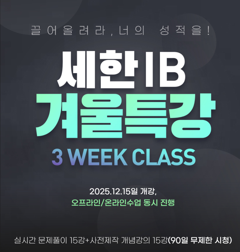 세한아카데미[겨울방학 내신 대비 IB특강]