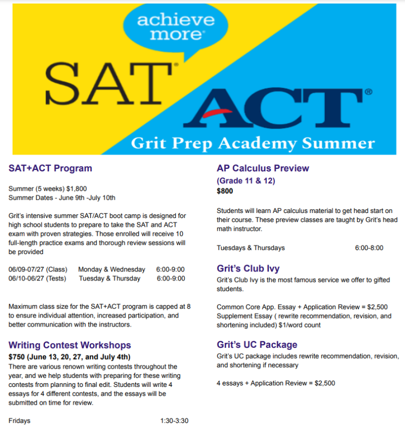 귀하의 자녀를 최고 명문대로 이끌어온 Grit Prep Academy에서 여름방학 SAT/ACT 특강을 개설합니다!