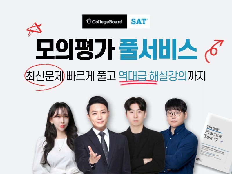 5월 한 달간, <칼리지보드 SAT 모의평가 4세트 + 역대급 해설강의 풀서비스>를 무료로 공개합니다!