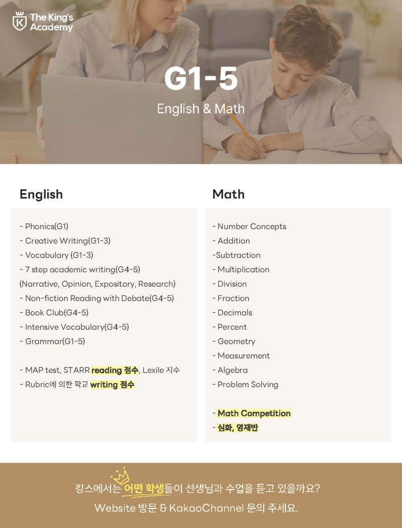 The King's Academy만의 노하우를 담은 G1-5 수업을 만나보세요.