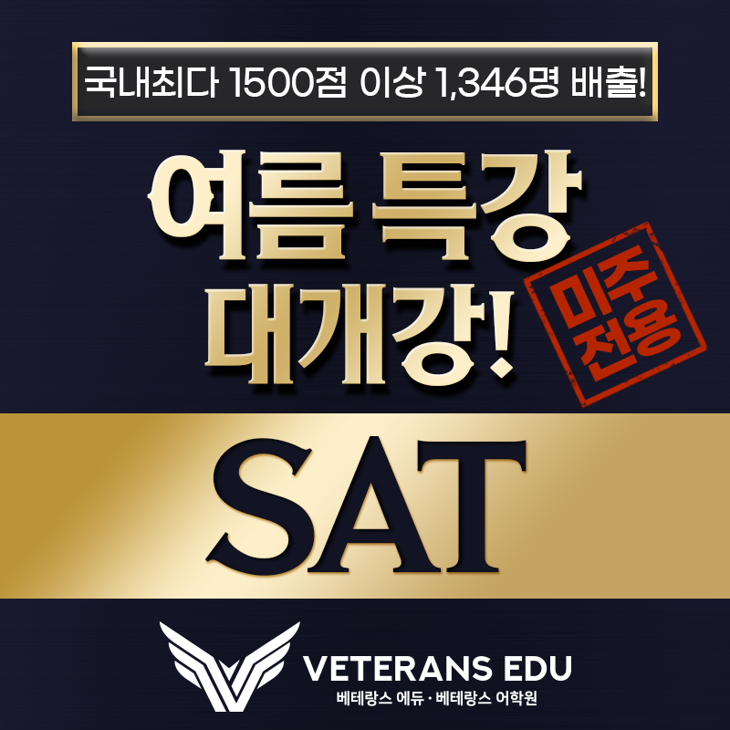 안녕하세요! 14년 전통의 SAT 전문교육기관 베테랑스에듀입니다.