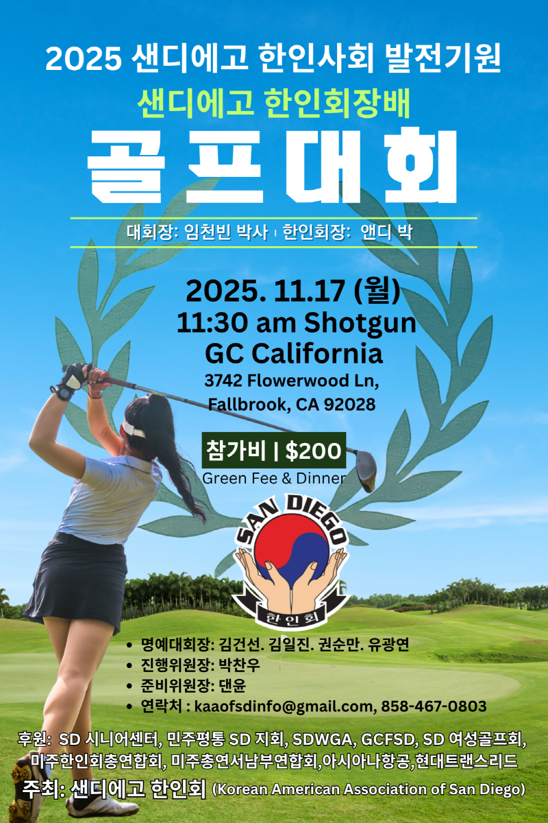 후원: SD 시니어센터, 민주평통 SD 지회, SDWGA, GCFSD, SD 여성골프회,