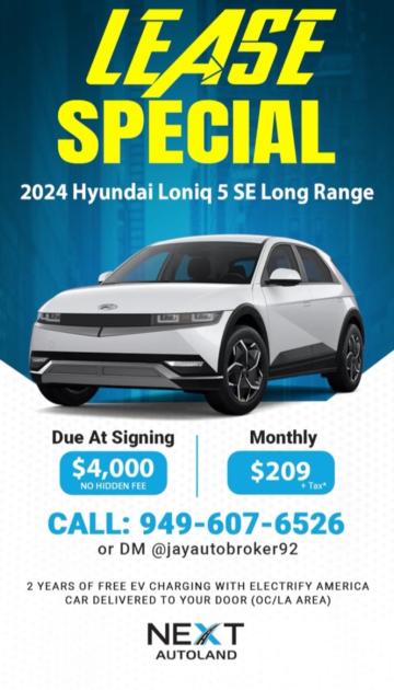 2024 아이오닉 5 SEL 24개월 24000 마일 4천다운 230 +tax .