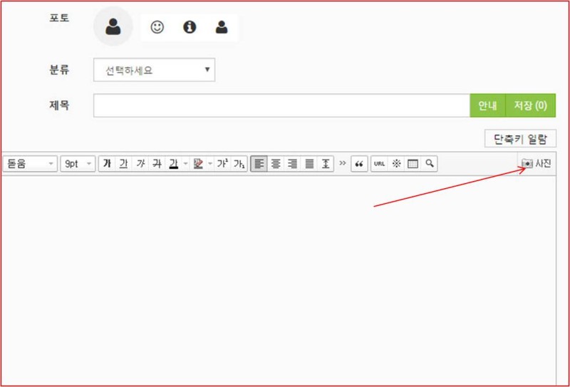 글쓰기 창 오른쪽에 보이는 "사진" 버턴을 이용하시면 최대 10개 까지 Drag & Drop 방식으로 바로 올리실수도 있습니다.