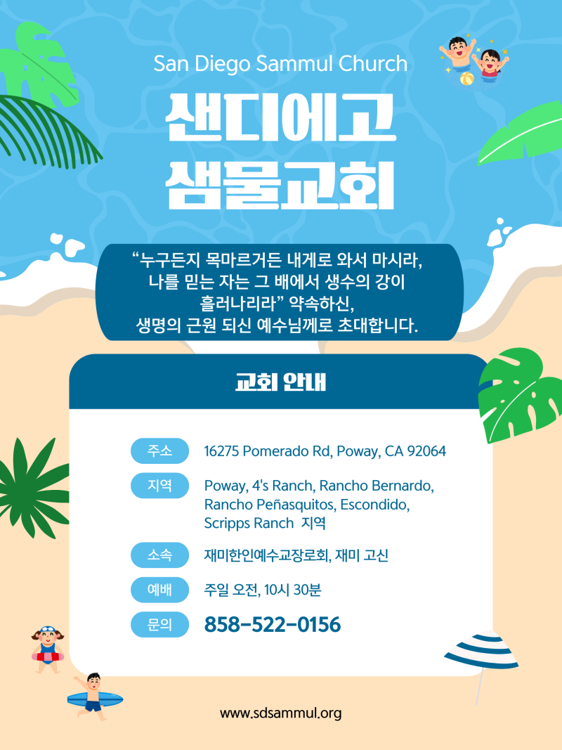 샌디에고 샘물교회 목요찬양 이번 주간에 모임(10/9)이 없습니다. pchoi 교회 0 473 2025.10.07 12:21 소속 교단 총회가 열림으로 10월 9일 목요일 저녁 7시 30분, 목요찬양은 없습니다. 0 Comments 로그인한 회원만 댓글 등록이 가능합니다. 목록 검색조건 제목 내용 제목+내용 검색어 또는 그리고 검색 번호 제목 이름 날짜 조회 3219 [교회] 믿음으로 도전하라(생명의삶,12/08,월) *예수생명 내생명 우… 비전맨 324 2025.12.07 비전맨 2025.12.07 324 3218 [불교] 샌디에고 관음사 12월 동지 법회 안내_12/20/25 토요일 BodhiHeart 340 2025.12.07 BodhiHeart 2025.12.07 340 3217 [교회] 생명의 삶 12월 스페셜(Special) SD베델교회 290 2025.12.03 SD베델교회 2025.12.03 290 3216 [교회] 수13:1-33, 끝까지 사명 감당(생삶,12/04,목) *예수… 비전맨 328 2025.12.01 비전맨 2025.12.01 328 3215 [교회] SD 베델교회 추수감사주일 SD베델교회 329 2025.11.29 SD베델교회 2025.11.29 329 3214 [교회] 수8:18-35,승리 후 언약 갱신(생삶,11/25,화) *예수… 비전맨 348 2025.11.24 비전맨 2025.11.24 348 3213 [교회] 그가 주를 만나기 전까지는! HIJCC10635 340 2025.11.24 HIJCC10635 2025.11.24 340 3212 [교회] 수6:15-27,믿음으로 순종한 대반전(생삶,11/20,목) *… 비전맨 362 2025.11.19 비전맨 2025.11.19 362 3211 [희망의글] ++ 기도로 거룩한 삶을 ++ -ilgrim 540 2025.11.12 -ilgrim 2025.11.12 540 3210 [교회] 수2:8-14, 삶을 바꾼 하룻 밤의 고백(생삶,11/12,수)… 비전맨 373 2025.11.12 비전맨 2025.11.12 373 3209 [교회] 예산 부족이나 셧다운이 일어나지 않는 천국으로 초대 HIJCC10635 389 2025.11.10 HIJCC10635 2025.11.10 389 3208 [알림] 세미나와 콘서트 theway 458 2025.11.04 theway 2025.11.04 458 3207 [교회] 개혁주의 요한계시록 강해 (51) - 엘센트로 한인교회 이용호 … TheBible 411 2025.11.04 TheBible 2025.11.04 411 3206 [교회] 언제나 환영해요! HIJCC10635 442 2025.11.03 HIJCC10635 2025.11.03 442 3205 [교회] 딤후2:14-26, ‘귀히 쓰는 그릇’ 사용 설명서(생명의삶,1… 비전맨 392 2025.11.03 비전맨 2025.11.03 392 3204 [불교] 샌디에고 관음사 11월 법회 안내/ 11월15일 토요일 BodhiHeart 332 2025.11.02 BodhiHeart 2025.11.02 332 3203 [교회] [주사랑교회] 할렐루야나잇!!! Trunk or treat 주사랑교회목회실 392 2025.11.02 주사랑교회목회실 2025.11.02 392 3202 [교회] 생명의 삶 11월 스페셜(Special) SD베델교회 355 2025.11.01 SD베델교회 2025.11.01 355 3201 [알림] 예배 세미나 및 가을 콘서트가 열립니다 theway 401 2025.10.30 theway 2025.10.30 401 3200 [교회] 쌀의 단 맛을 느끼려면 HIJCC10635 370 2025.10.27 HIJCC10635 2025.10.27 370 3199 [교회] 슥14:1-9, 그날, 심판을 넘어 생수의 강으로(생명의삶,10… 비전맨 444 2025.10.27 비전맨 2025.10.27 444 3198 [교회] 개혁주의 요한계시록 강해 (50) - 엘센트로 한인교회 이용호 … TheBible 384 2025.10.25 TheBible 2025.10.25 384 3197 [교회] 선교사 초청 간증집회에 초청합니다-출라비스타장로교회 비전맨 368 2025.10.25 비전맨 2025.10.25 368 3196 [알림] 팀룩 워십 찬양 집회 ElkumSDCKC 518 2025.10.21 ElkumSDCKC 2025.10.21 518 3195 [교회] 슥7:1-14, 금식 보다 순종(생명의삶,10/20,월) *예수… 비전맨 461 2025.10.20 비전맨 2025.10.20 461 3194 [교회] 샌디에고 온누리교회 대학,청년부 Joseph2 540 2025.10.19 Joseph2 2025.10.19 540 3193 [교회] 개혁주의 요한계시록 강해 (49) - 엘센트로 한인교회 이용호 … TheBible 364 2025.10.18 TheBible 2025.10.18 364 3192 [교회] 슥3:1-10,그슬린 나무의 극적 반전(생삶,10/16,목) *… 비전맨 453 2025.10.15 비전맨 2025.10.15 453 3191 [교회] 성장 HIJCC10635 386 2025.10.13 HIJCC10635 2025.10.13 386 3190 [교회] 크리스천 부모교육 세미나(Zoom 무료) 빈들소리 451 2025.10.11 빈들소리 2025.10.11 451 3189 [교회] 개혁주의 요한계시록 강해 (48) - 엘센트로 한인교회 이용호 … TheBible 425 2025.10.08 TheBible 2025.10.08 425 열람중 [교회] 샌디에고 샘물교회 목요찬양 이번 주간에 모임(10/9)이 없습니… pchoi 474 2025.10.07 pchoi 2025.10.07 474 3187 [교회] 수고하며 무거운 짐을 진 사람은 내게 오라 HIJCC10635 467 2025.10.06 HIJCC10635 2025.10.06 467 3186 [교회] 샌디에고 베델교회 찬양예배&Patio Party SD베델교회 480 2025.10.04 SD베델교회 2025.10.04 480 3185 [교회] [주사랑교회] 할렐루야나잇 트렁크오어트릿!! 주사랑교회목회실 505 2025.10.02 주사랑교회목회실 2025.10.02 505 3184 [교회] 개혁주의 요한계시록 강해 (47) - 엘센트로 한인교회 이용호 … TheBible 364 2025.10.02 TheBible 2025.10.02 364 3183 [교회] 생명의 삶 10월 스페셜(Special) SD베델교회 395 2025.10.02 SD베델교회 2025.10.02 395 3182 [교회] 롬12:1-8 <은혜받은 자의 거룩한 삶>(생삶,10/1,수) … 비전맨 487 2025.09.29 비전맨 2025.09.29 487 3181 [희망의글] 상처치유 동글이 412 2025.09.28 동글이 2025.09.28 412 3180 [교회] 하늘의 문(The Gate of Heaven) HIJCC10635 488 2025.09.27 HIJCC10635 2025.09.27 488 3179 [교회] 개혁주의 요한계시록 강해 (46) - 엘센트로 한인교회 이용호 … TheBible 411 2025.09.25 TheBible 2025.09.25 411 3178 1 [교회] '없음'이 두려움을 키울 때, '있음'으로 찬송과 감사가 나오게… 1 HIJCC10635 394 2025.09.23 HIJCC10635 2025.09.23 394 3177 [교회] SD 베델교회 찬양 예배 & Patio Party SD베델교회 422 2025.09.22 SD베델교회 2025.09.22 422 3176 [교회] 목요 찬양에 초대합니다[샌디에고 샘물교회] pchoi 444 2025.09.21 pchoi 2025.09.21 444 3175 [교회] 초청강사에게 듣습니다. popopu 401 2025.09.19 popopu 2025.09.19 401 3174 [교회] 개혁주의 요한계시록 강