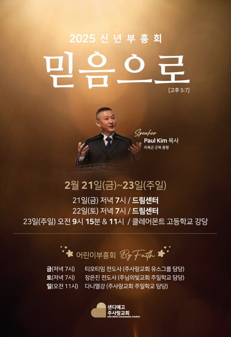 [샌디에고주사랑교회] 신년부흥성회 PART2 폴김목사 어린이부흥회가 강사를모시고 함께 진행됩니다.