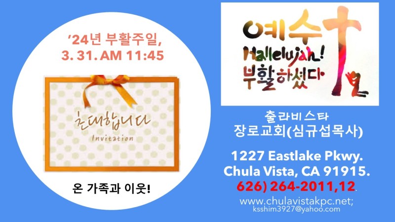 부활주일 예배에 초청합니다-출라비스타 31, 오전 11:45