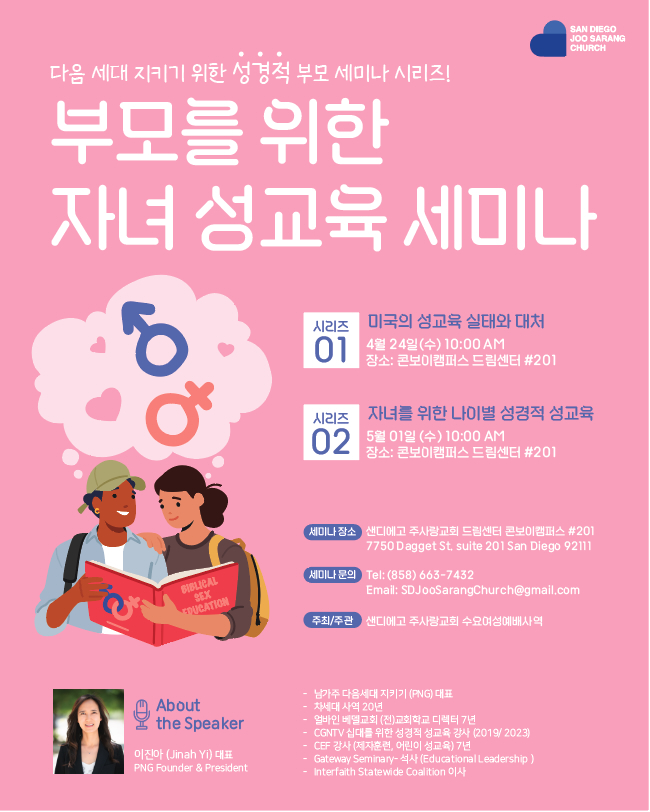 요즘 미국 성교육이 급진적인 상황에서 / 다음세대를 지키기 위해 성경적 부모 세미나 시리즈로 5월 가정의 달을 맞아 2주연속 진행하게 됩니다.