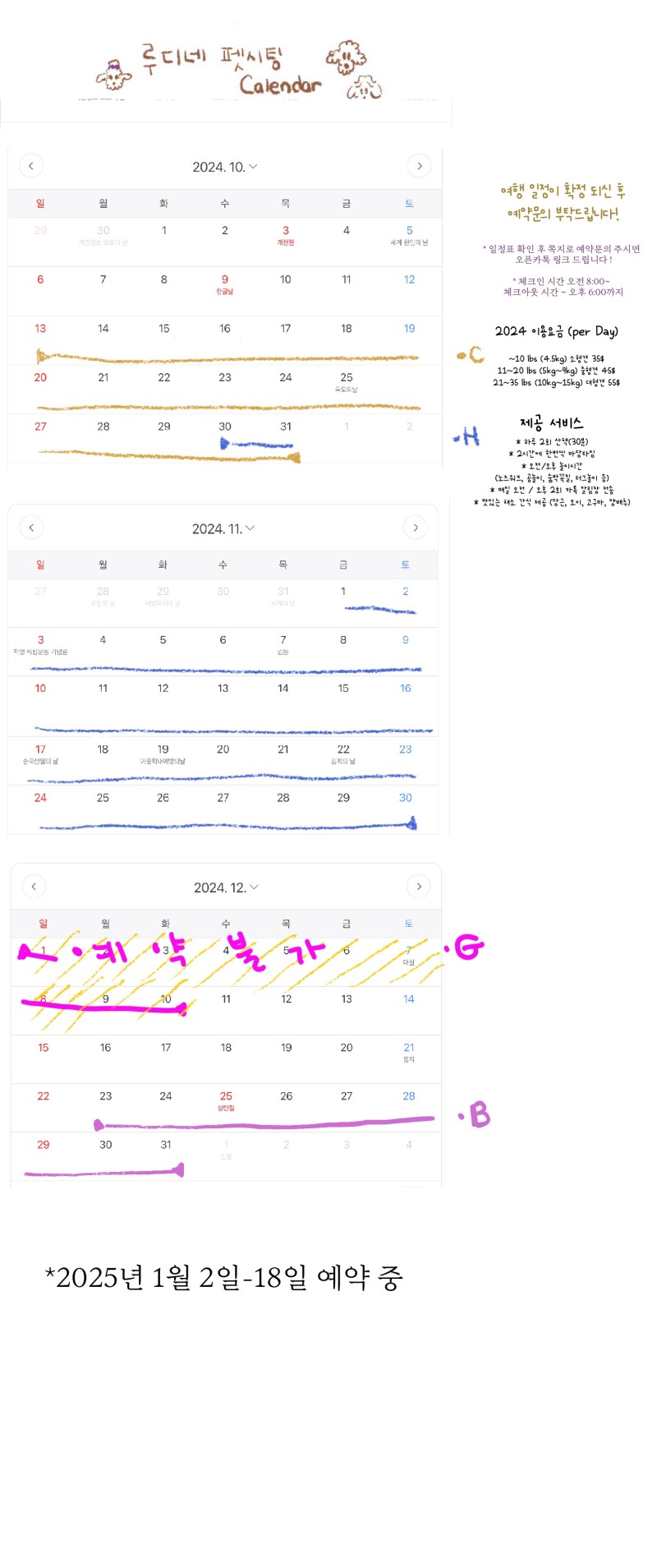 2024년 12월, 2025년 1월 예약 일정 공유합니다.