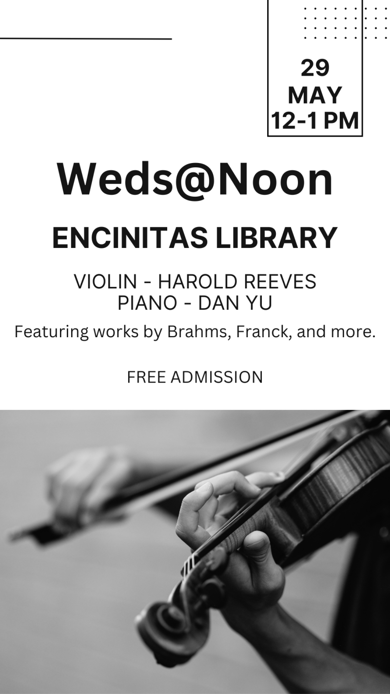 Come watch me perform for FREE on 5/29 at the Encinitas Library at 12pm!