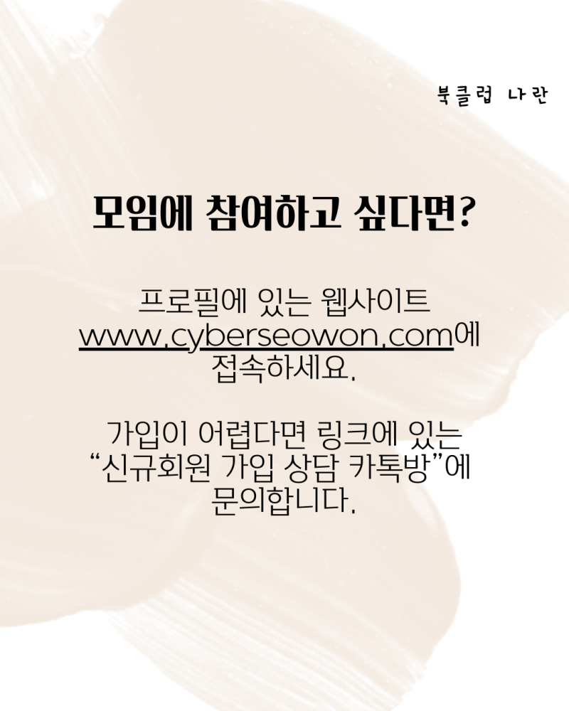 후기나 서평은 북클럽 나란과 각 모임의 홍보에 많은 도움이 됩니다. 후기와 서평 많이 올려주세요.