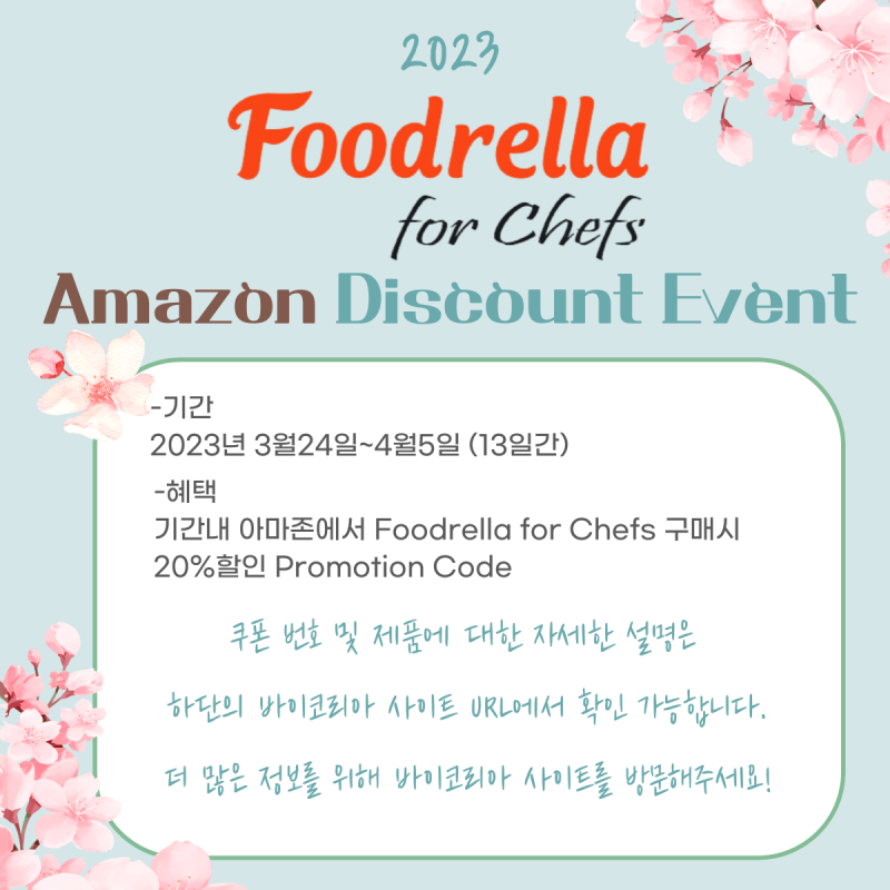 혜택 : 기간내 아마존에서 Foodrella for Chefs 구매시 20%할인 Promotion Code