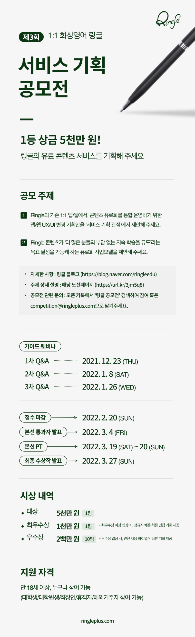 - 문의처 : competition@ringleplus.com 및 오픈카톡방