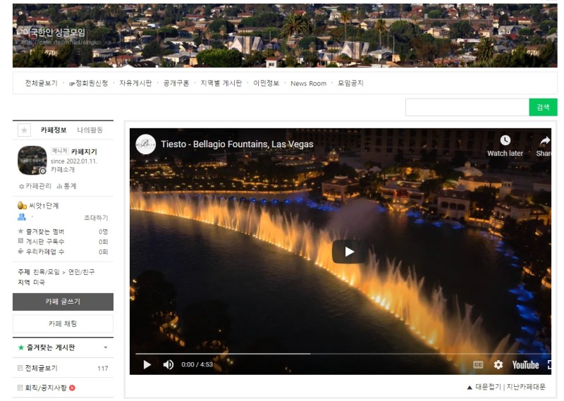 미국한인 싱글모임 스티브이 0 1862 2022.01.11 21:34 안녕하세요?혹시 미국에 계신 싱글이시면 아래주소 방문 추천드립니다https://cafe.naver.com/singleusa 0 Comments 로그인한 회원만 댓글 등록이 가능합니다. 목록 검색조건 제목 내용 제목+내용 검색어 또는 그리고 검색 번호 제목 이름 날짜 조회 330 1 한인 중년 여성 건강 증진 연구 참여자 모집($150 … 1 utaustinson 1067 2024.11.08 utaustinson 2024.11.08 1067 329 어머니를 대신해 법정에 섭니다!2024 정의로운동행 1864 2024.09.28 정의로운동행 2024.09.28 1864 328 1 어느곳으로 정해야 될까요? 1 영오chris 2056 2024.09.18 영오chris 2024.09.18 2056 327 3 샌디에고 버스 이용해보신 분 있으실까요? 3 소망소망 2244 2024.09.13 소망소망 2024.09.13 2244 326 1 LA 스쿨푸드가 없어진 이유 1 부린이1123 2387 2024.09.12 부린이1123 2024.09.12 2387 325 2 93년생 모임 참여하실 분! 2 이지니니 2150 2024.08.28 이지니니 2024.08.28 2150 324 한국으로 다시 이주 준비하시는 분 계신가요? 이지니니 1928 2024.08.18 이지니니 2024.08.18 1928 323 펌글) (35) 인간관계에서 오는 고통에서 보다 여유를… wonilkim06 1343 2024.08.11 wonilkim06 2024.08.11 1343 322 !!!!! 영양사님 우리 같이 해요 !!!!! -ong Hyun Ju 1499 2024.07.13 -ong Hyun Ju 2024.07.13 1499 321 1 사주 잘 보시는 분 소개 드려요 1 wonilkim06 1707 2024.06.30 wonilkim06 2024.06.30 1707 320 Work from home-Academic consul… Kinoy 1273 2024.06.17 Kinoy 2024.06.17 1273 319 건강한 담배 만들기 FlowerGirl 1400 2024.06.16 FlowerGirl 2024.06.16 1400 318 13 왜 월남국수/ 베트남쌀국수 집은 다 불친절할까요? 13 -ean 3262 2024.06.11 -ean 2024.06.11 3262 317 7월6일~9일 5인 가족 에어비앤비 구합니다 여우곰탱이 1342 2024.06.10 여우곰탱이 2024.06.10 1342 316 중년 한인여성을 대상으로한 연구대상자를 모집합니다. (… utaustinwpapp 1399 2024.06.05 utaustinwpapp 2024.06.05 1399 315 설거지, 야채과일 씻기, 아기우유병 세척 PLMI 하나… soyoung123 1275 2024.05.16 soyoung123 2024.05.16 1275 314 St. Petersburg에서 발생한 참사: 버스가 다… FlowerGirl 1382 2024.05.10 FlowerGirl 2024.05.10 1382 313 아파트 방 가격 분배 고민 shmda 1695 2024.04.30 shmda 2024.04.30 1695 312 [장기/단기 서브렛] UCSD 근처 아파트 거실방에 입… shmda 1400 2024.04.30 shmda 2024.04.30 1400 311 토네이도가 휩쓸고 간 네브래스카와 아이오와 FlowerGirl 1268 2024.04.27 FlowerGirl 2024.04.27 1268 초기화 날짜순 조회순 정렬 검색 12345 Search 검색대상 제목 내용 제목+내용 회원아이디 회원아이디(코) 글쓴이 글쓴이(코) 또는 그리고 검색어 필수 검색 닫기