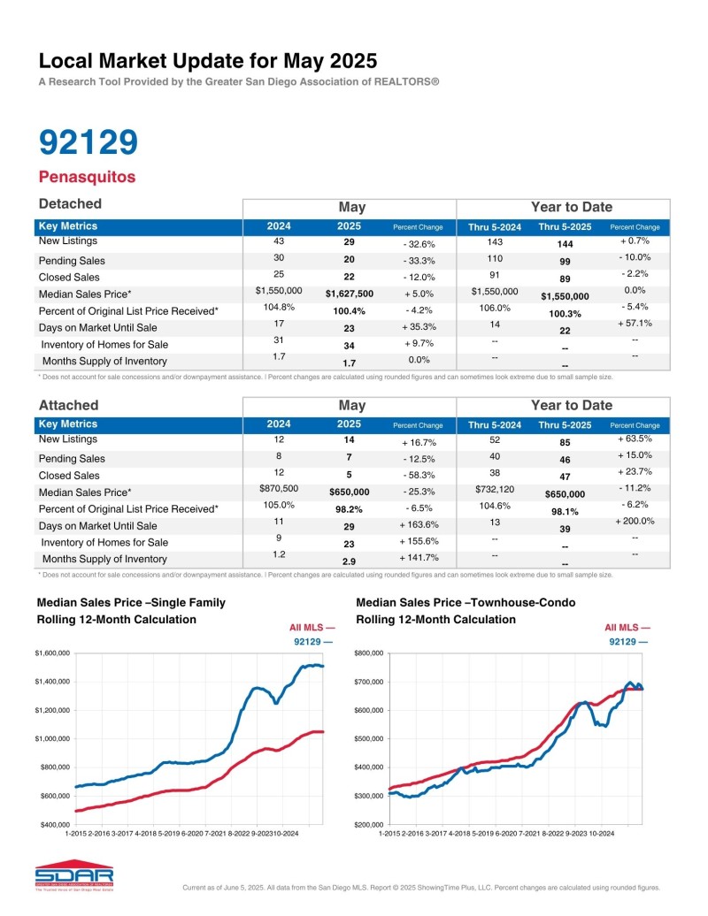 랜쵸 페나스퀴토스 (Zip Code: 92129) 2025년 5월달 마켓 업데이트 입니다.