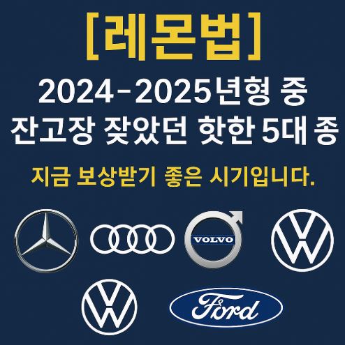 [레몬법] 2024~2025년형 중 잔고장 잦았던 핫한 5대 차종