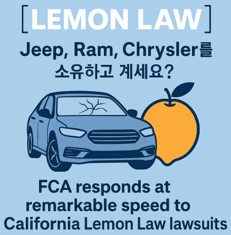 [레몬법] Jeep, Ram, Chrysler를 소유하고 계세요? FCA제조사, 캘리포니아 레몬법 소송에 놀라운 속도로 응답 …