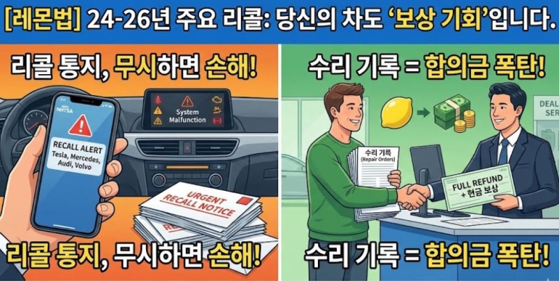 [레몬법] "내 차도 혹시?" 24-26년 주요 리콜, 무시하면 수천-수만 불 손해 보는 이유