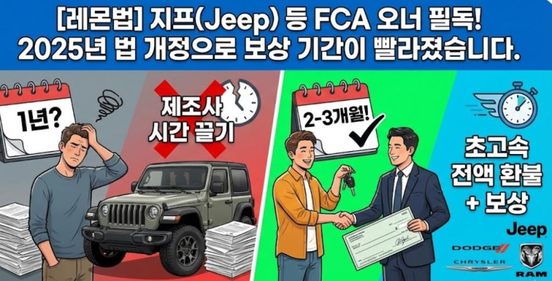[레몬법] 지프(Jeep) 등 FCA 오너 필독! 2025년 법 개정으로 보상 기간이 빨라졌습니다.