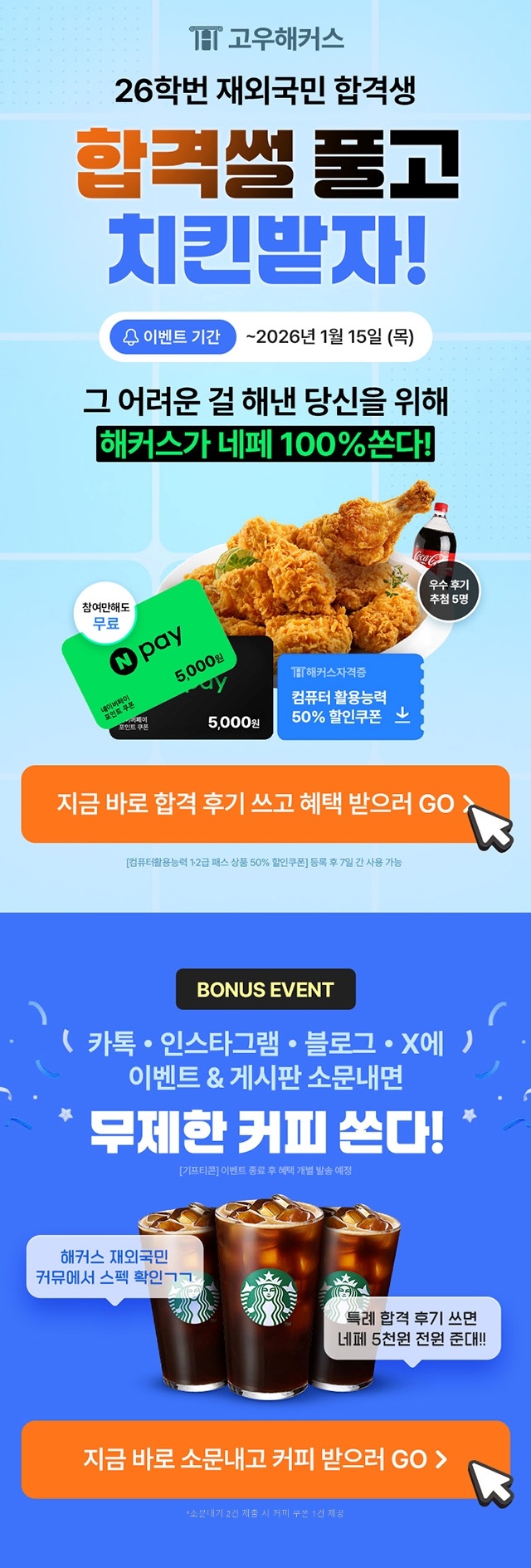 [고우해커스] 26학번 특례 합격 후기 쓰면 네페+치킨 받자★