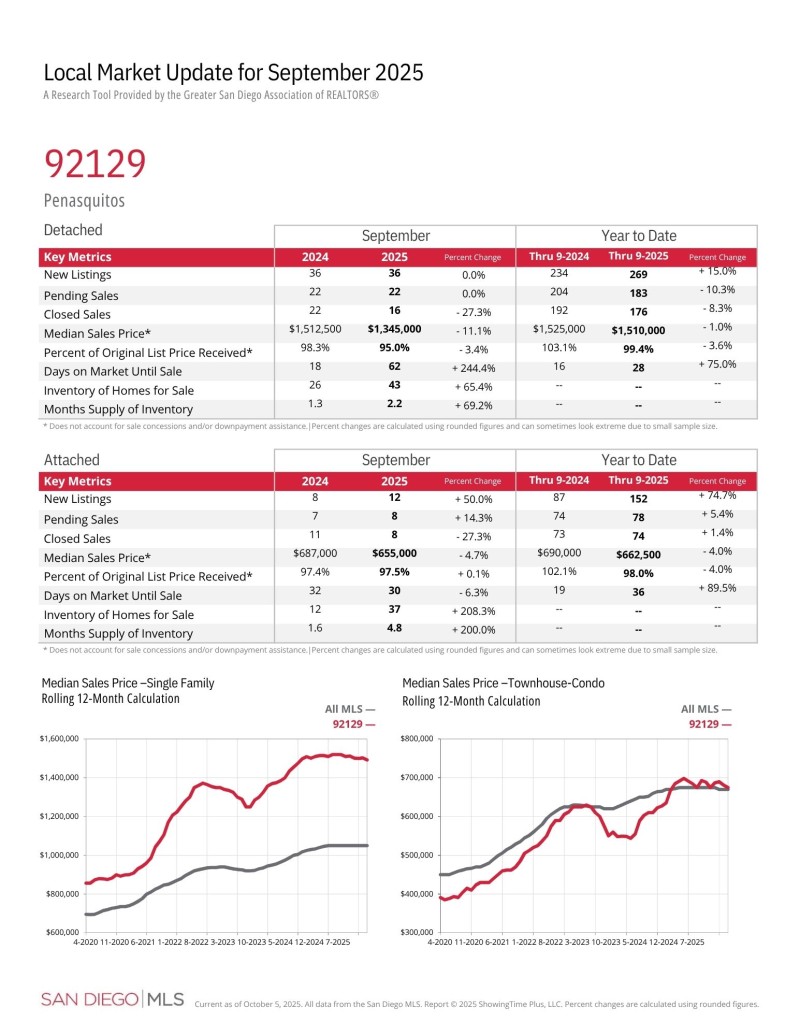 랜쵸 페나스퀴토스 (Zip Code: 92129) 2025년 9월달 마켓 업데이트 입니다.
