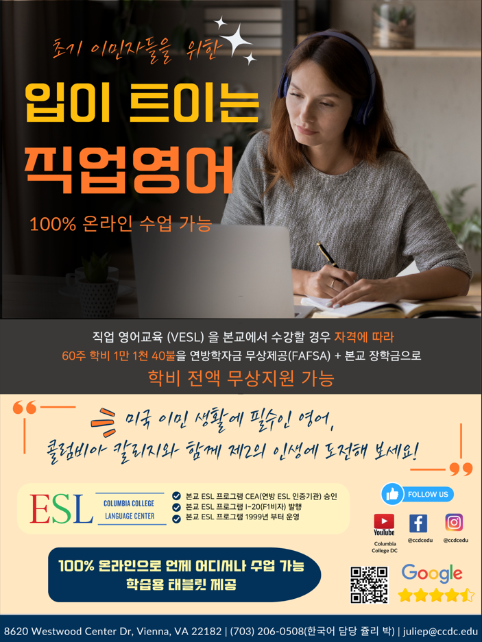 미연방 학자금 보조(FAFSA)받아서 온라인으로 취업 영어 배우세요. **이민자들을 위한 취업 영어 클래스**