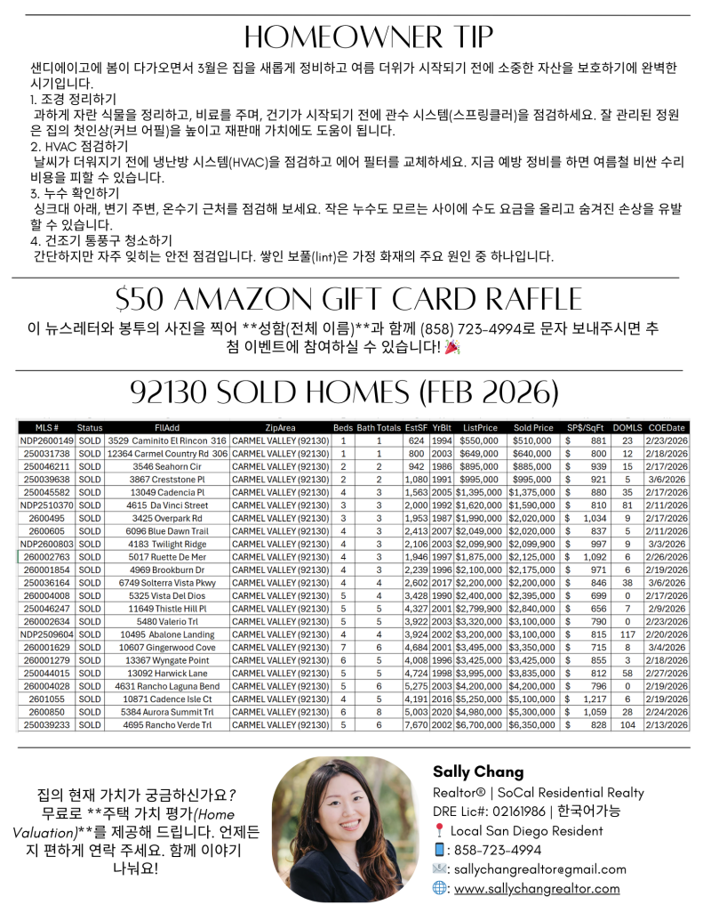 ☀️ 샐리장 부동산 :3월 뉴스레터 (로컬 행사, 홈 오너 팁, 아마존 라플등)