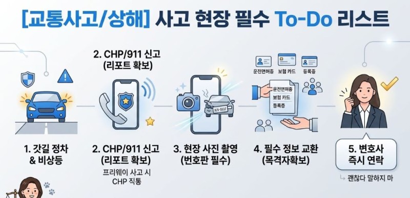 오늘은 정신없는 사고 현장에서 반드시 기억하셔야 할 필수 To-Do 리스트를 정리해 드립니다.